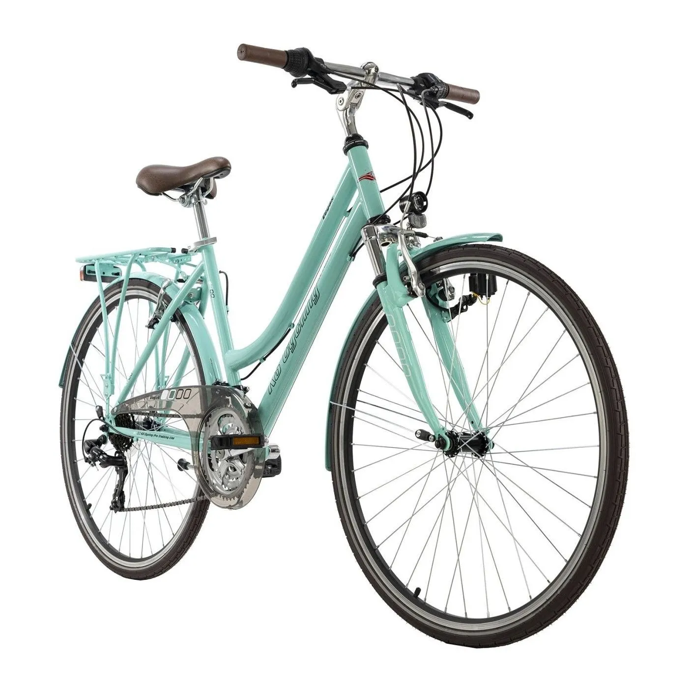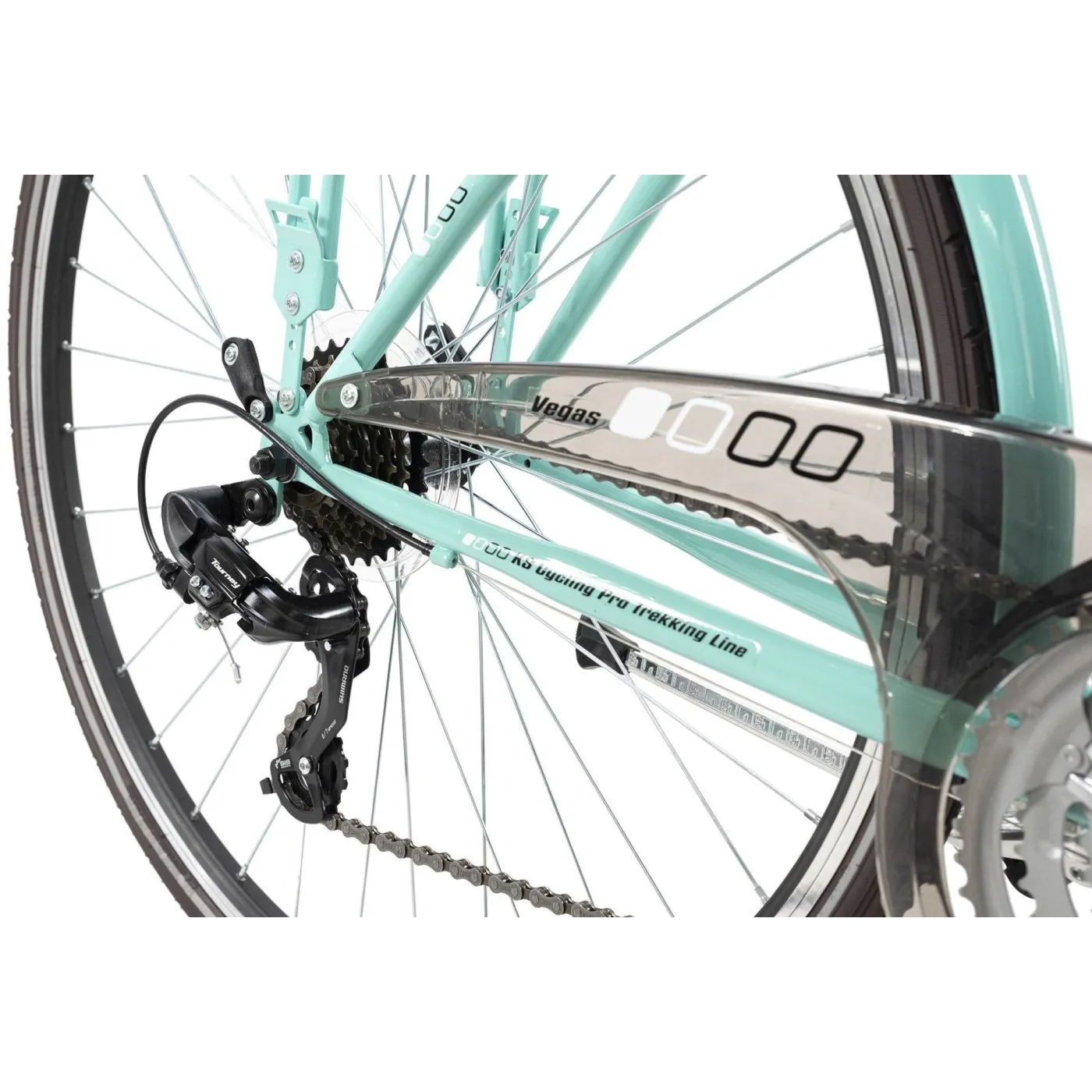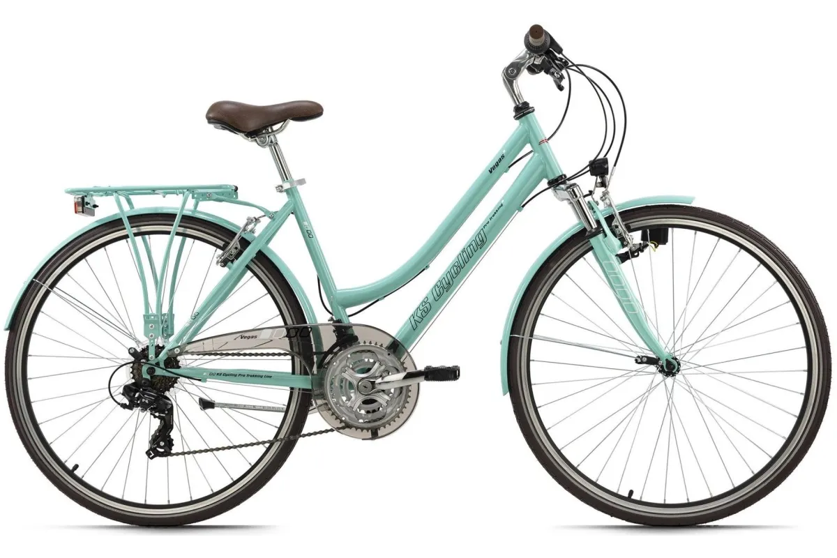Niezależnie od tego, czy chcesz wygodnie jeździć na rowerze po mieście, czy planujesz dłuższą wycieczkę: damski rower trekkingowy VEGAS 28" firmy KS Cycling jest zawsze na miejscu! Rower ma turkusową ramę, która w połączeniu z amortyzowanym widelcem w tym samym kolorze wygląda szczególnie elegancko. Przezroczysta osłona łańcucha, a także opony, siodełko i kierownica, utrzymane w intensywnym brązowym kolorze, dopełniają projekt. Dzięki 21-biegowej przerzutce pochyłości nie stanowią już problemu, natomiast amortyzowany widelec sprawia, że małe nierówności na trasie są prawie nie do zauważenia.
