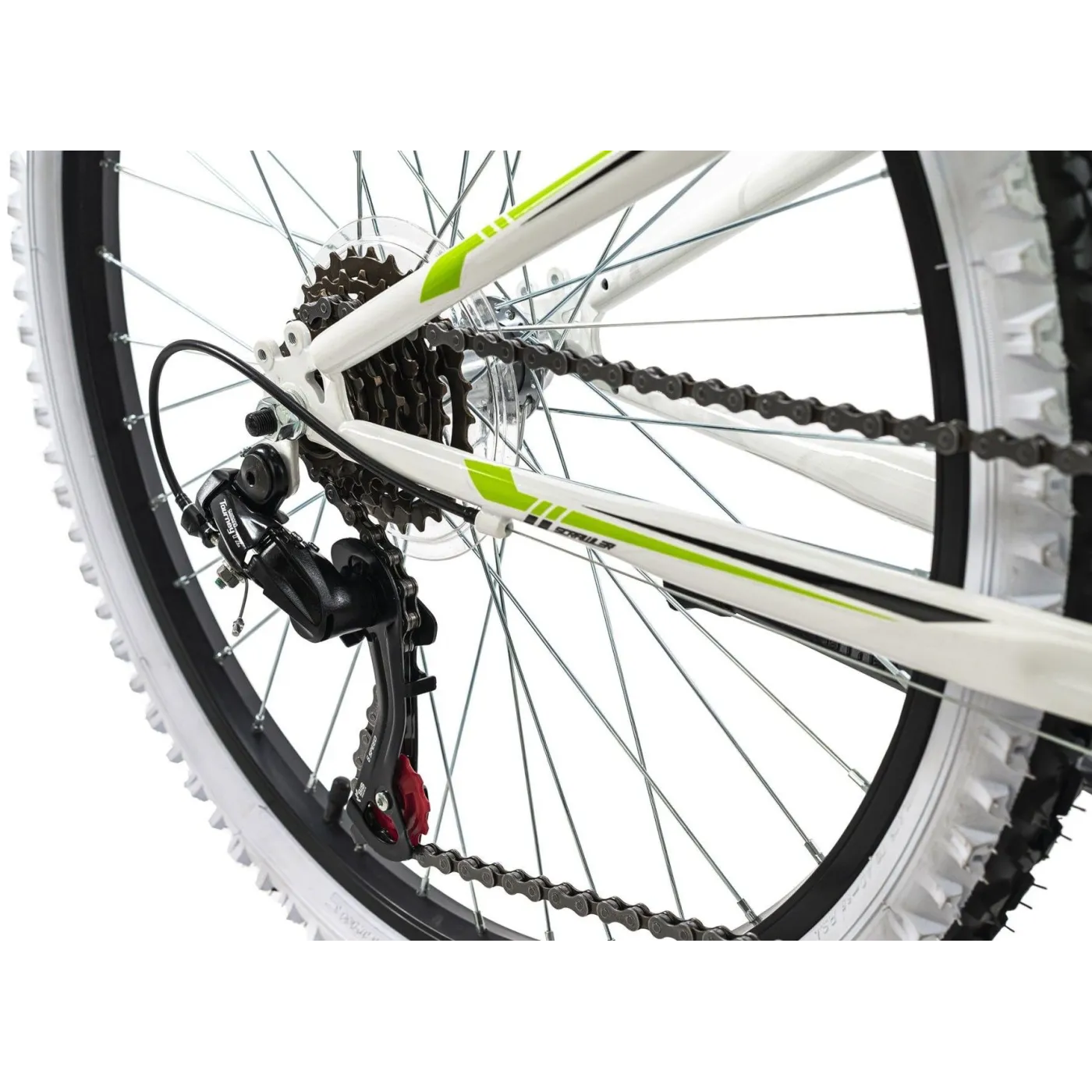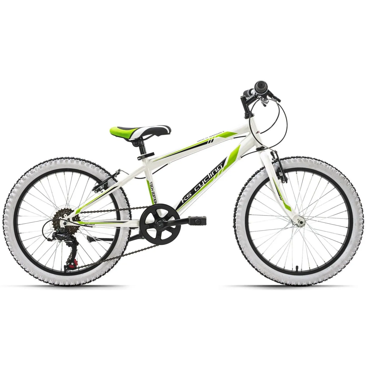 Rower dziecięcy Scrawler 20" firmy KS Cycling to solidny rower górski dla najmłodszych, który w niczym nie ustępuje wyglądem starszym. Grube opony i kolorowy design sprawiają, że rower dziecięcy przyciąga wzrok. Bezpieczeństwo zapewniają hamulce V-brake z przodu i z tyłu. Rower jest również wyposażony w 6-biegową przerzutkę firmy SHIMANO.