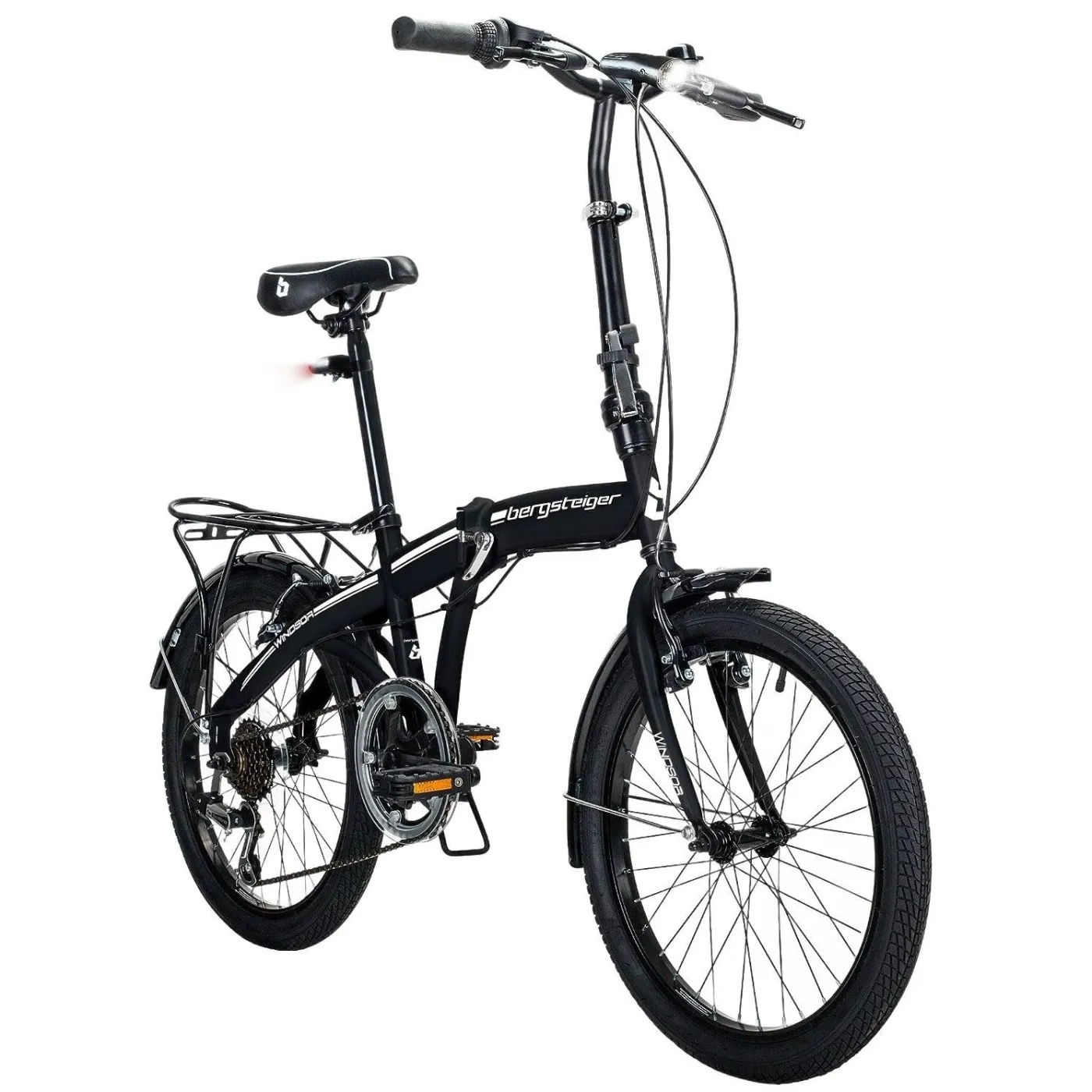 Składany rower Bergsteiger zapewnia komfort i elastyczność każdego dnia. Dzięki intuicyjnej strukturze składania, można go bez wysiłku złożyć i równie równie łatwo rozłożyć. Po złożeniu pasuje do niemal każdego bagażnika; po zmontowaniu ma doskonałe właściwości jezdne i jest również atrakcyjny wizualnie na krótkich lub długich trasach. Rower charakteryzuje się przemyślaną konstrukcją geometryczną i nowoczesnym wzornictwem. Do wyposażenia należy komfortowa 6-biegowa przerzutka Shimano Tourney, która jest obsługiwana za pomocą uchwytu obrotowego. Zapewniająca rowerowi niezbędną stabilność, sztywna rama stalowa Hi-Ten ma niewielką wagę i rzucający się w oczy ergonomiczny kształt. Hamulce V-brake z przodu i z tyłu umożliwiają dopasowanie do sytuacji.