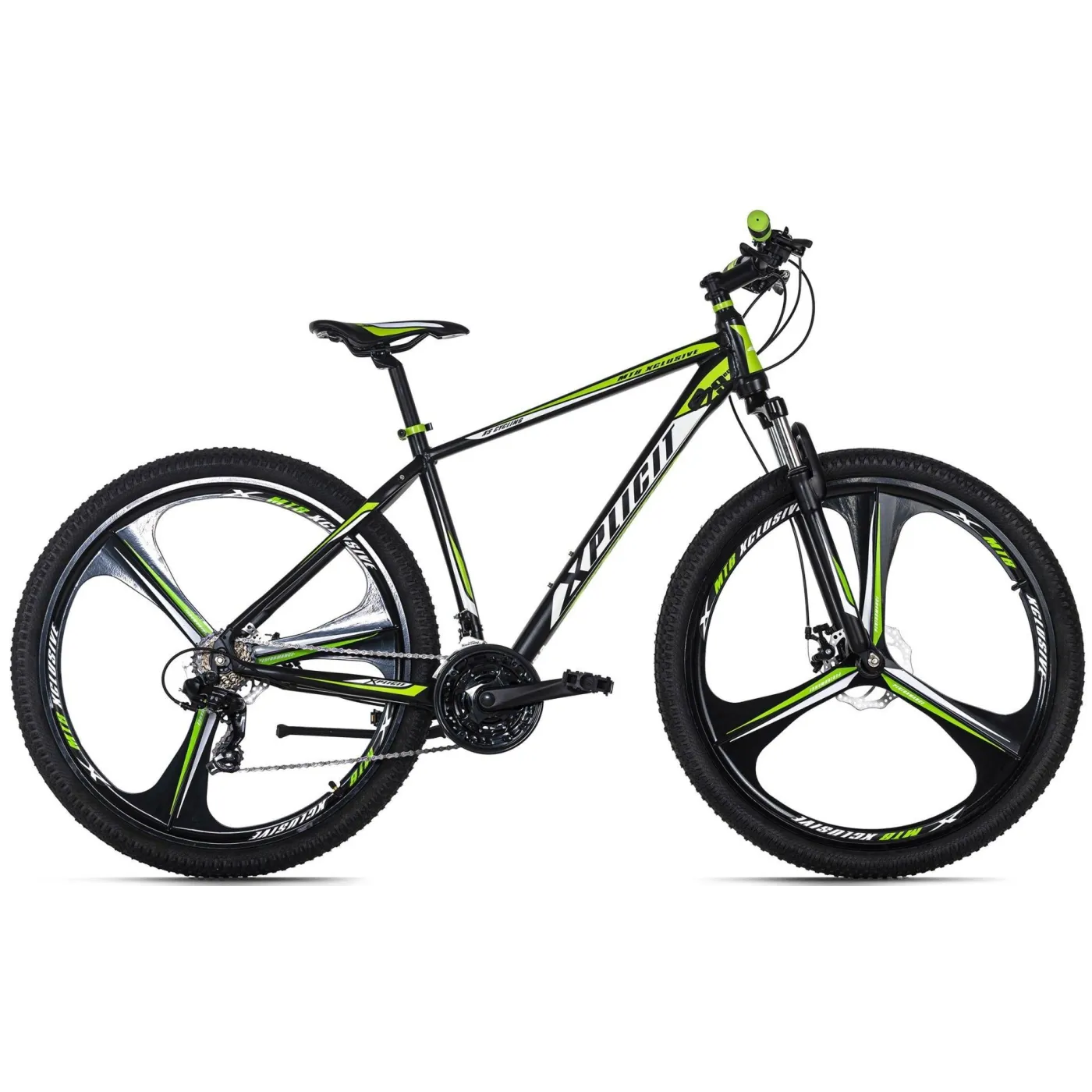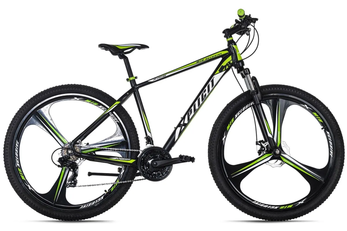 29-calowy rower górski XPlicit firmy KS Cycling ma czarną ramę z kolorowymi naklejkami, dzięki czemu jest niezwykle modny. Ponadto jest wyposażony w 21-biegową przerzutkę i wiele komponentów marki SHIMANO. Hamowanie obejmuje mechaniczne hamulce tarczowe. Absolutną atrakcją są jednak stabilne 29-calowe koła magnezowo-aluminiowe o niepowtarzalnym wyglądzie i wysokiej jakości uszczelnionych łożyskach kulkowych zwykłych.