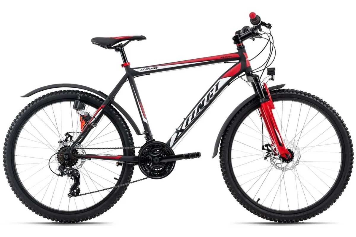 Zawsze gotowy do jazdy na pełnym gazie: matowy, czarny, terenowy rower górski XTINCT firmy KS Cycling zawsze wyróżnia się kolorowymi naklejkami. Cechy eleganckiego roweru również robią wrażenie. Rower wyposażony jest w 21-biegową przerzutkę z manetkami obrotowymi. Mechaniczne hamulce tarczowe z przodu i z tyłu zapewniają niezbędne hamowanie. System oświetlenia zgodny z StVZO, błotniki i ergonomiczne siodełko idealnie wpasowują się w ogólny obraz.