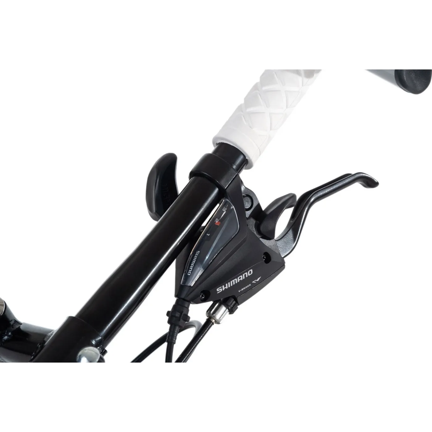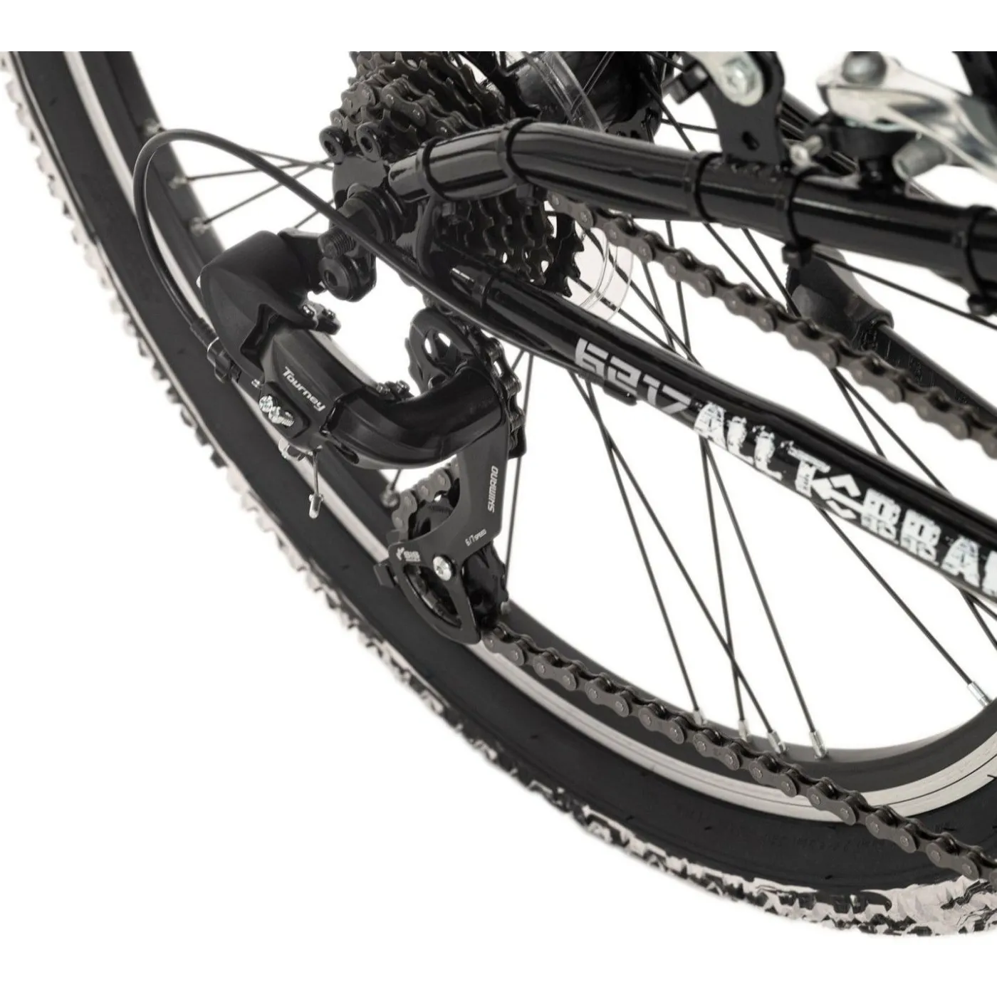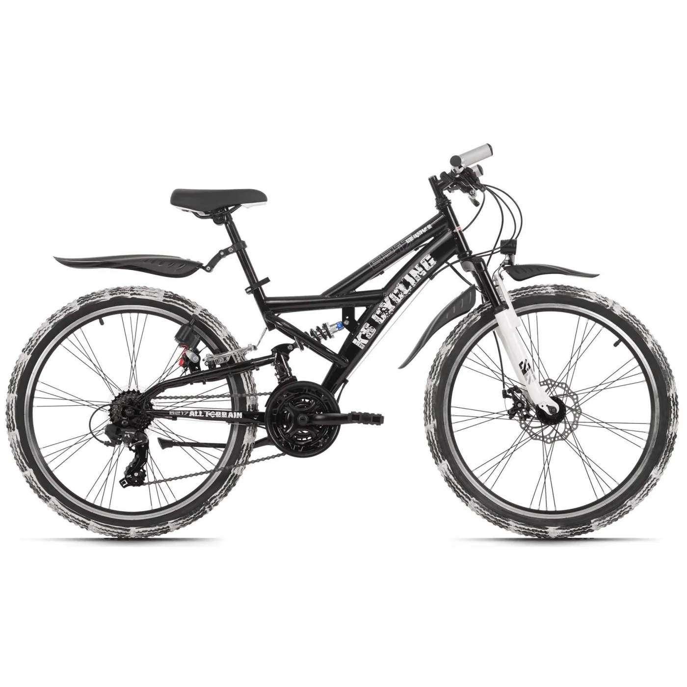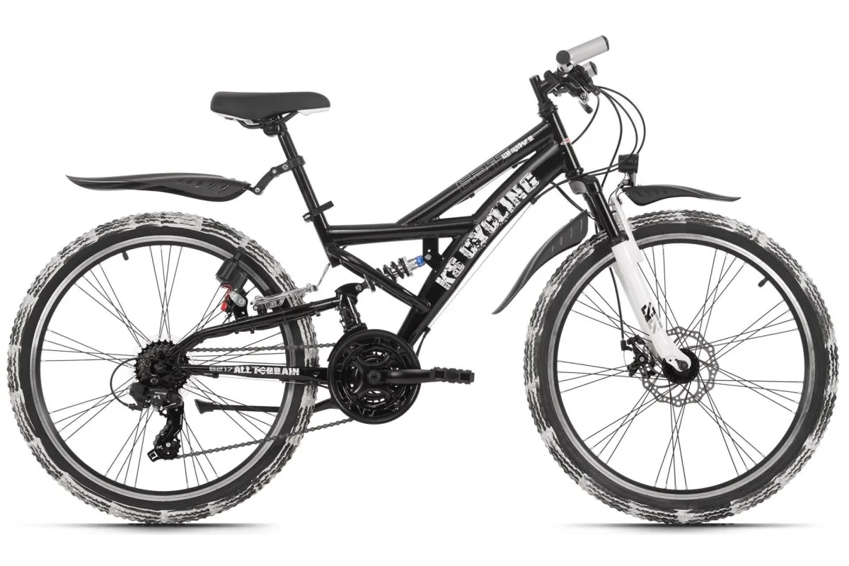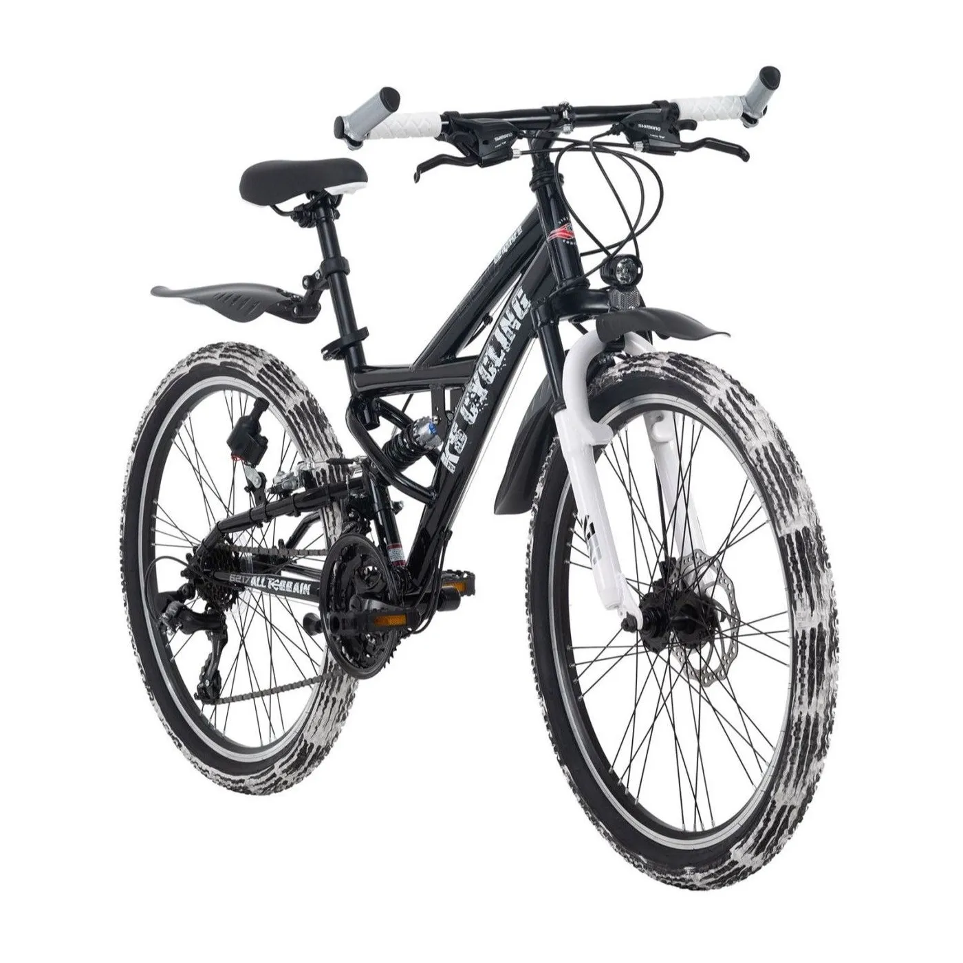 Rower dziecięcy 24" z pełnym zawieszeniem CRUSHER firmy KS Cycling na pierwszy rzut oka zachwyca swoim nietypowym wyglądem. Podstawą jest amortyzowany widelec i czarna, amortyzowana rama. Ręczne malowanie jest absolutnie wyjątkowe - a naklejki z efektem „zniszczenia” sprawiają, że rower dziecięcy naprawdę przyciąga wzrok.
