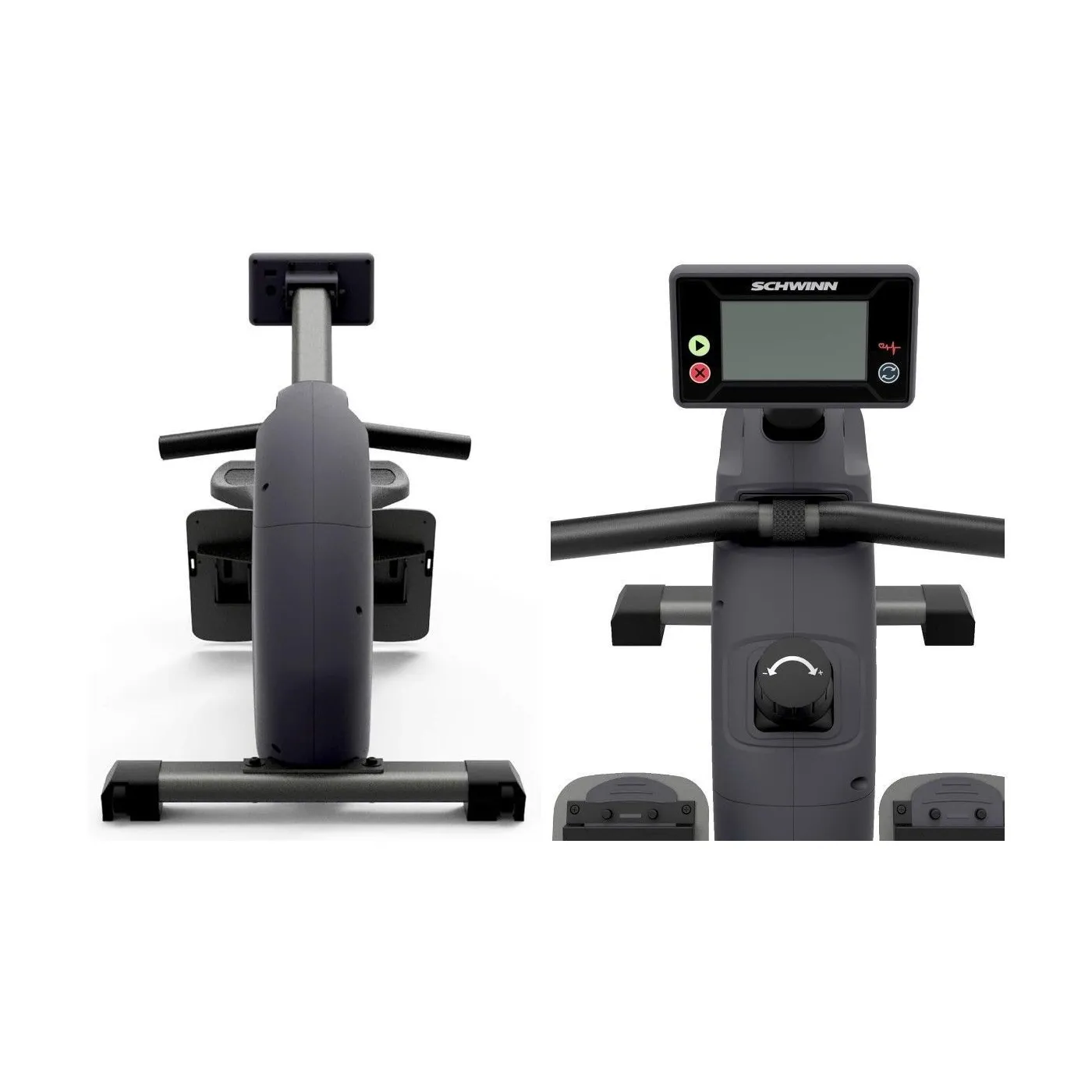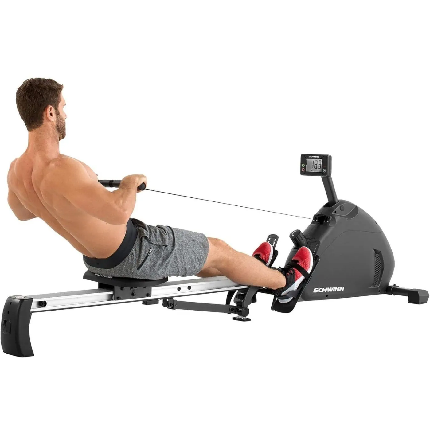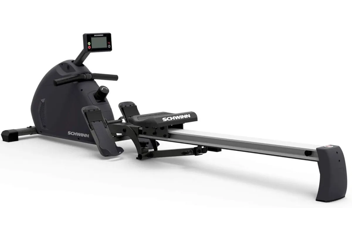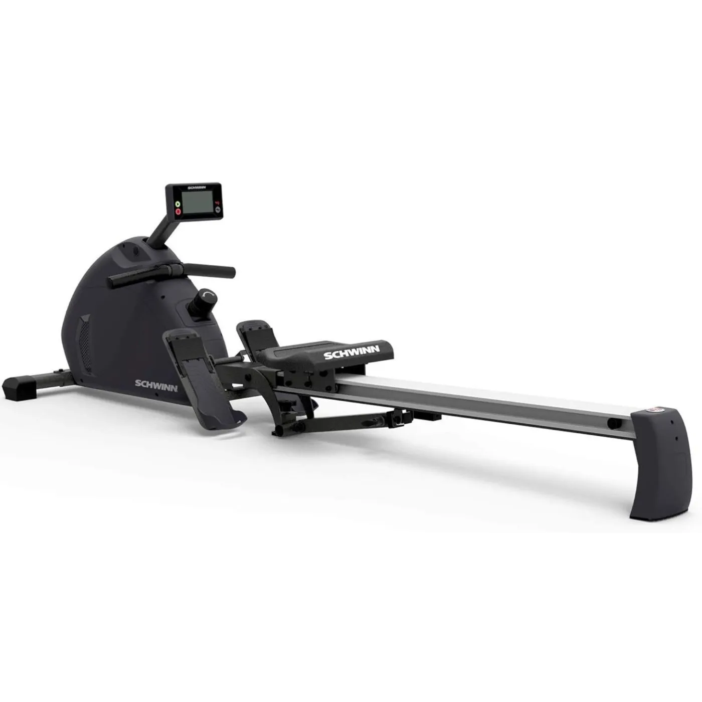Rower Schwinn zapewnia doskonałą jakość do użytku domowego. Dzięki wyjątkowo długim szynom, dużemu ekranowi LCD z regulacją wysokości i regulowanym pedałom, trenażer wioślarski jest odpowiedni i wygodny dla każdego. Ergonomiczne uchwyty roweru Schwinn Rower zapewniają dużą przyczepność. Siedzisko trenażera wioślarskiego jest duże i posiada winylową warstwę wierzchnią, która jest łatwa do czyszczenia. Rama jest solidna i wytrzymała, dzięki czemu możesz stabilnie trenować na swoim trenażerze wioślarskim.
