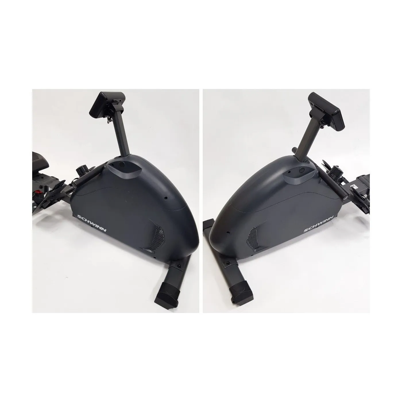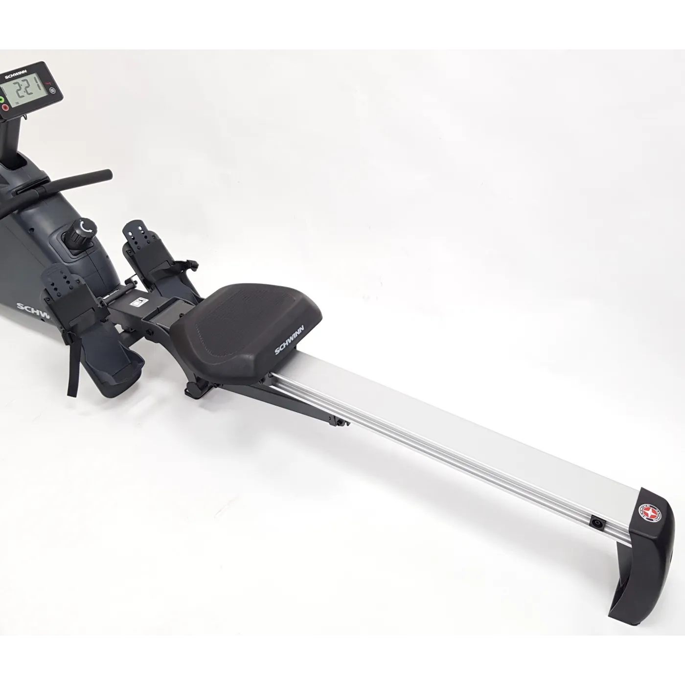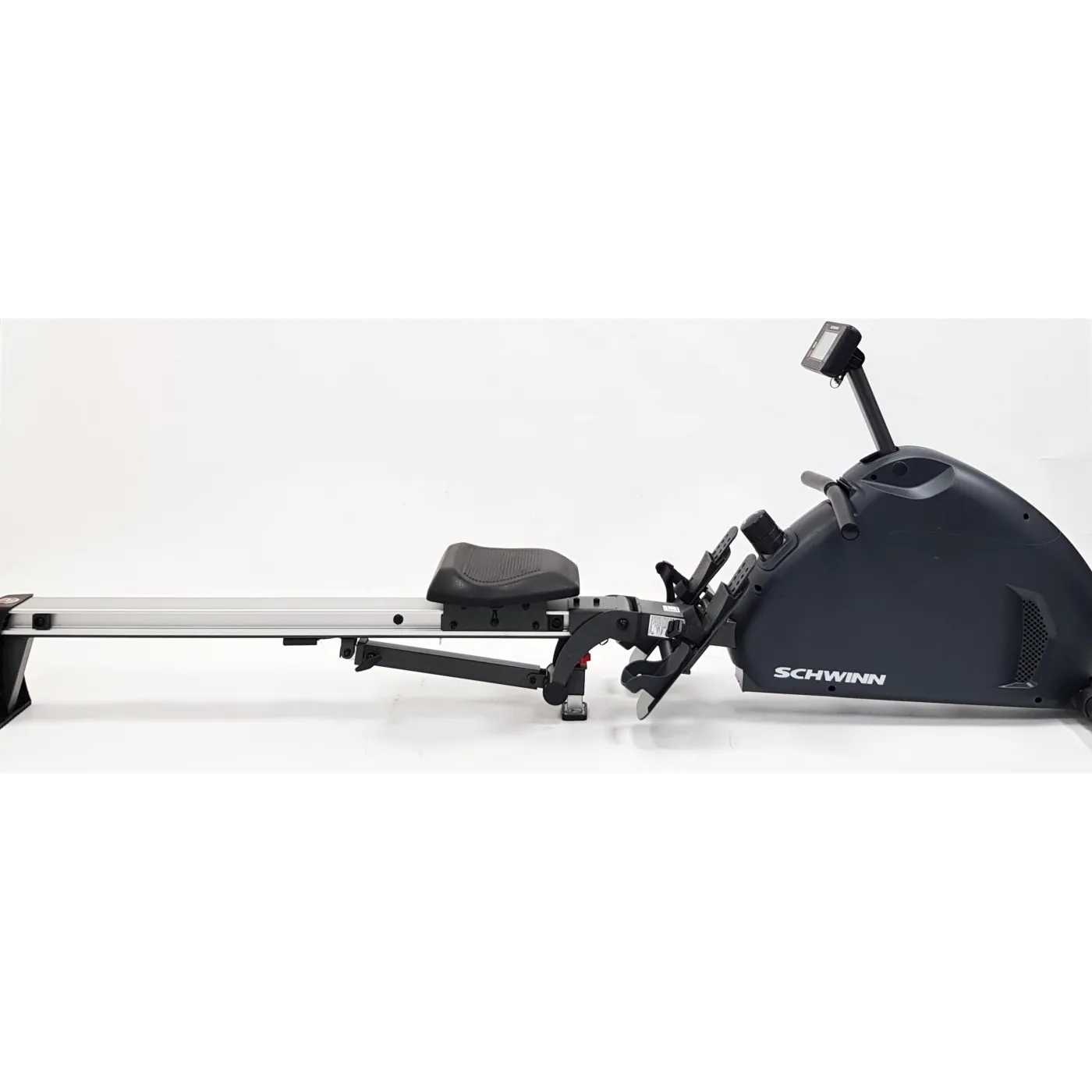 Rower Schwinn zapewnia doskonałą jakość do użytku domowego. Dzięki wyjątkowo długim szynom, dużemu ekranowi LCD z regulacją wysokości i regulowanym pedałom, trenażer wioślarski jest odpowiedni i wygodny dla każdego. Ergonomiczne uchwyty roweru Schwinn Rower zapewniają dużą przyczepność. Siedzisko trenażera wioślarskiego jest duże i posiada winylową warstwę wierzchnią, która jest łatwa do czyszczenia. Rama jest solidna i wytrzymała, dzięki czemu możesz stabilnie trenować na swoim trenażerze wioślarskim.
