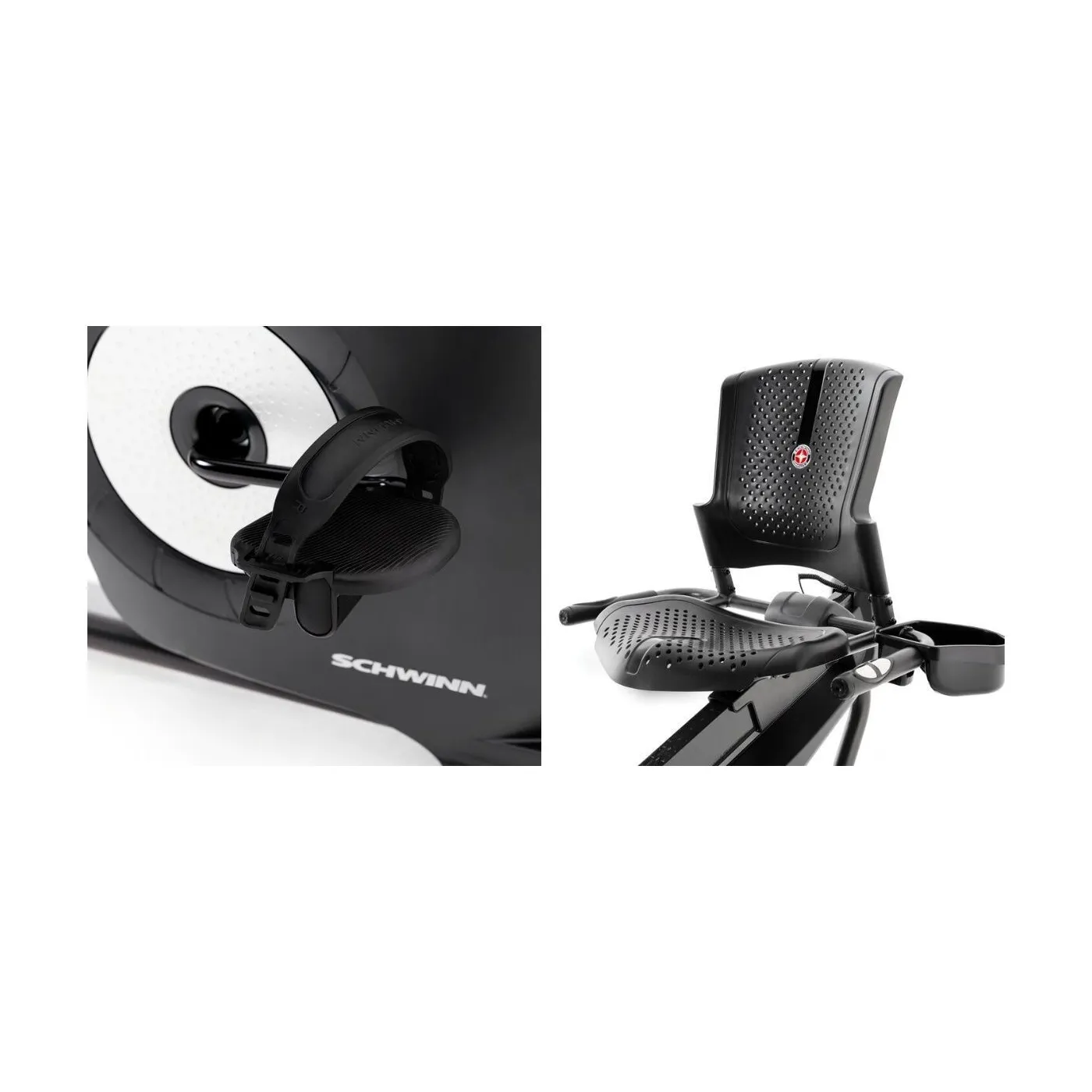 Rower Schwinn 510R ma wszelkie niezbędne akcesoria oraz dodatki, które czynią trening przyjemnym i komfortowym. Wyposażony jest w duże i wygodne siodełko z możliwością regulacji wysokości oraz uchwyty kierownicy z czujnikami mierzącymi puls podczas ćwiczenia. Antypoślizgowe pedały z regulowanymi paskami sprawiają, że trening jest bezpieczniejszy, a stopy nie ślizgają się w trakcie jazdy. Model 510R ma także tackę na akcesoria, uchwyt na bidon oraz kółka transportowe do przemieszczania sprzętu.