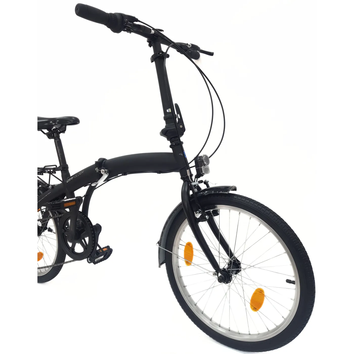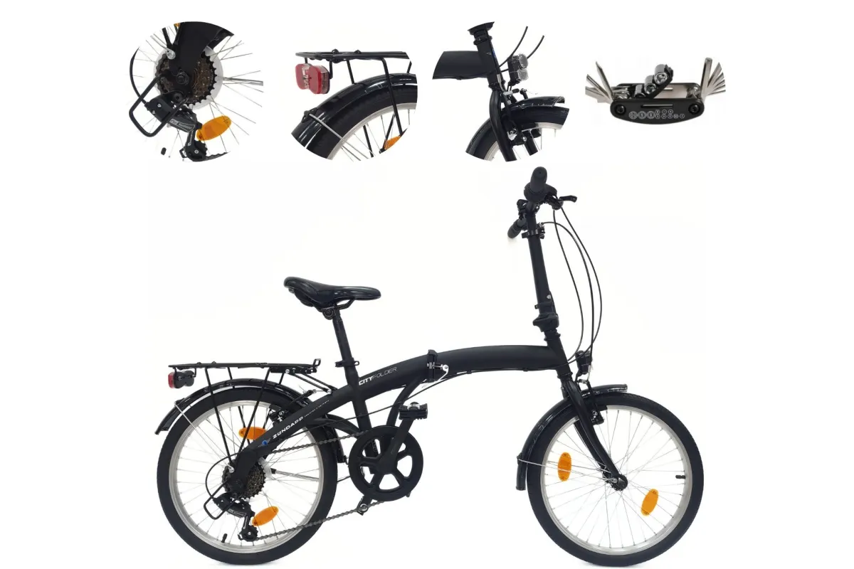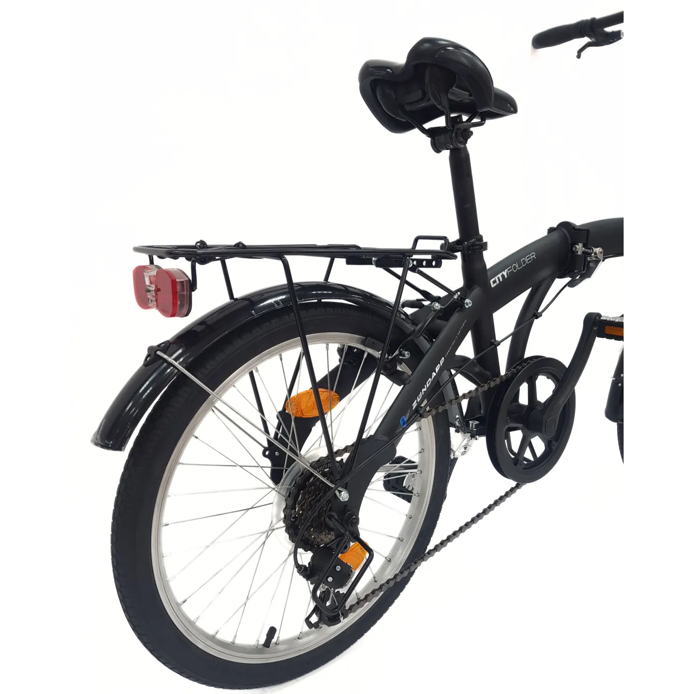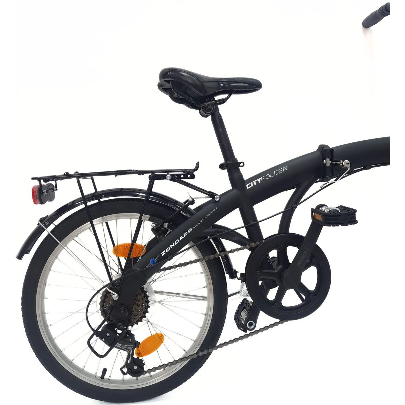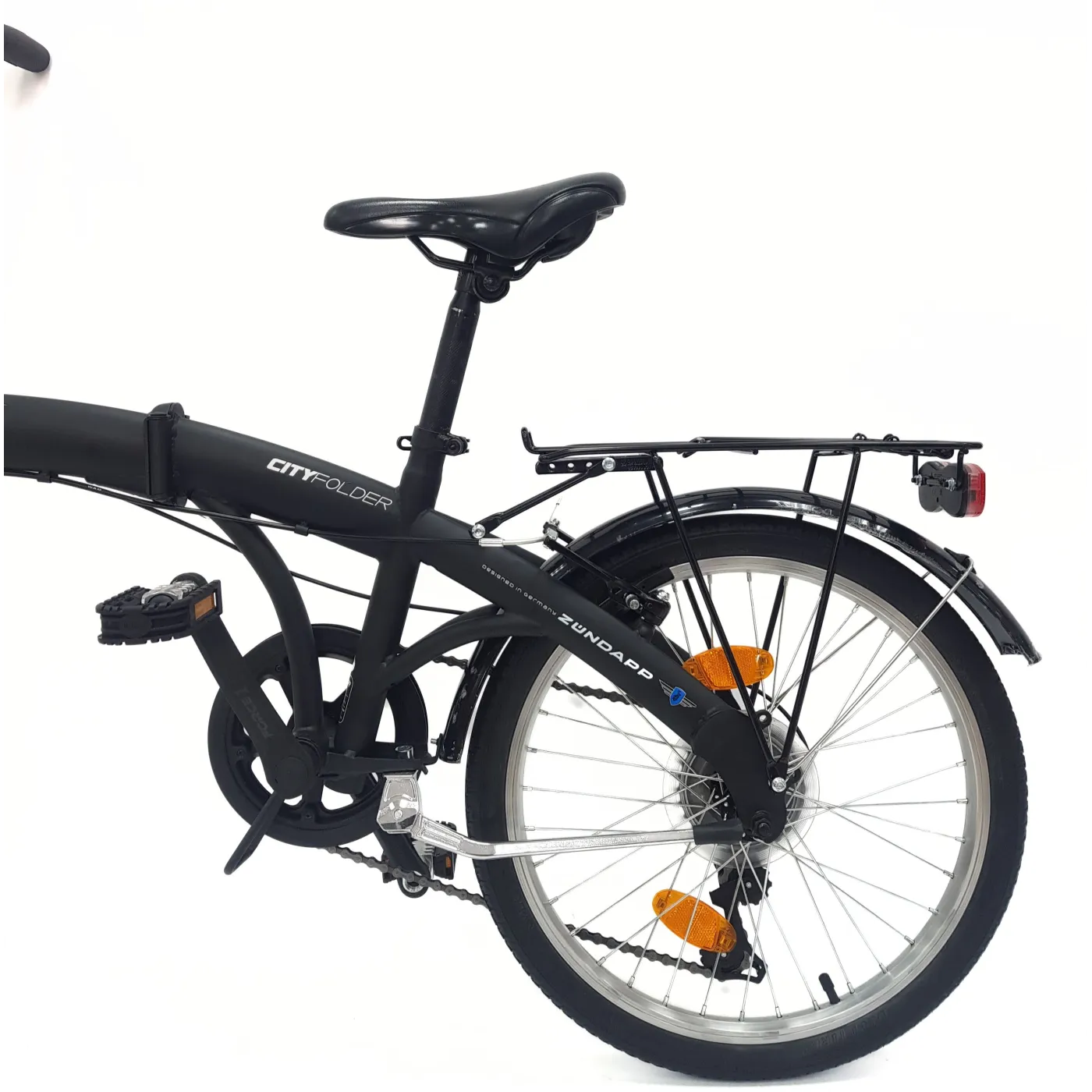 📏 ZF20 City Folder ma dwa łatwe w użyciu mechanizmy składania w stalowej ramie, we wsporniku i w pedale. Dzięki temu przemyślanemu mechanizmowi składania możesz złożyć swój rower do poręcznego rozmiaru 85 cm x 35 cm x 62 cm w ciągu kilku sekund. Oznacza to, że w razie potrzeby rower zmieści się również w standardowych bagażnikach.