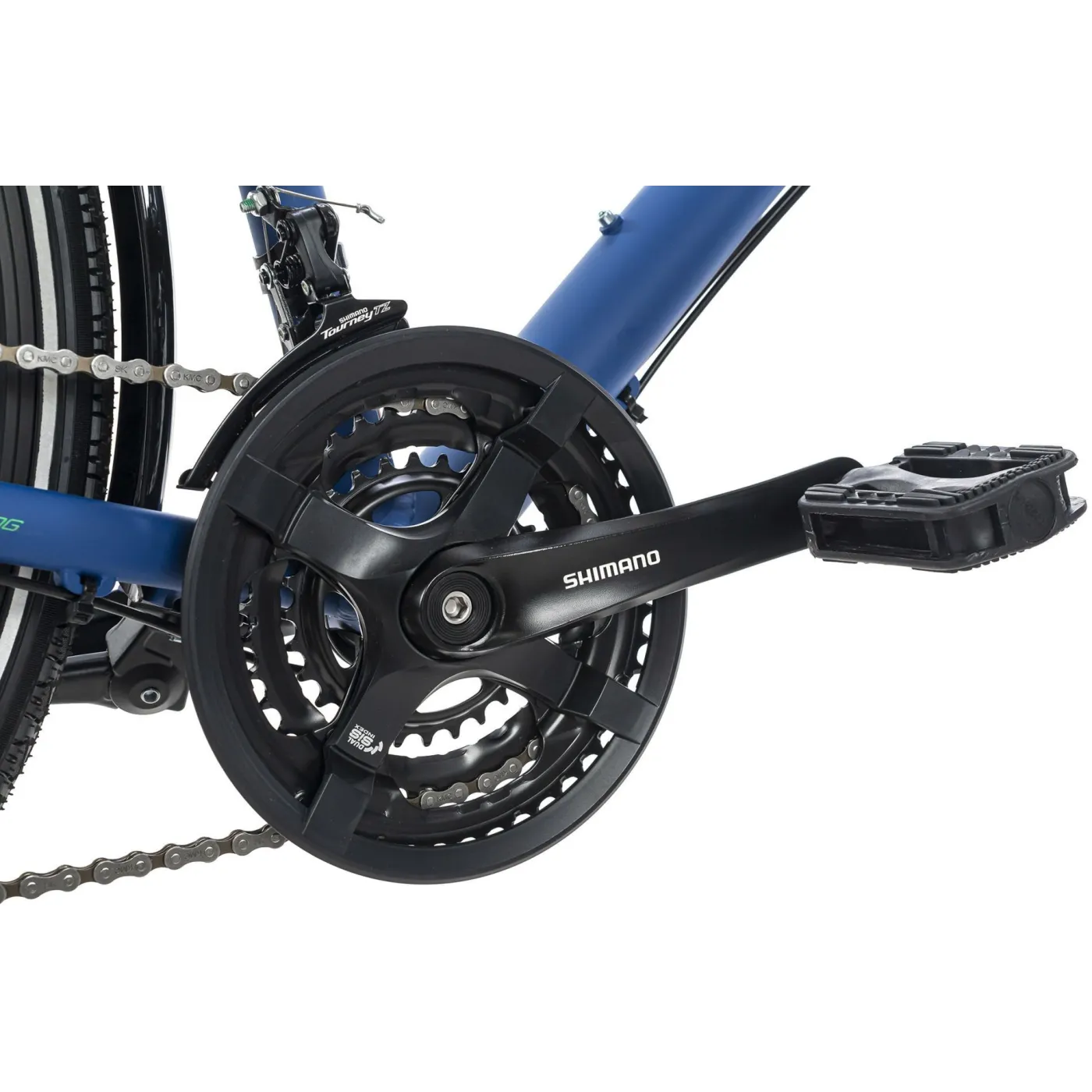 Rower ma wiele do zaoferowania nie tylko wizualnie, ale także technicznie. Dzięki 21-biegowej przerzutce SHIMANO jesteś dobrze przygotowany na każde wzniesienie, a mechaniczne hamulce tarczowe z przodu i z tyłu zapewniają doskonałą siłę hamowania. Dodatkowo, dzięki systemowi oświetlenia jesteś zawsze bezpieczny na drodze, nawet w ciemności.