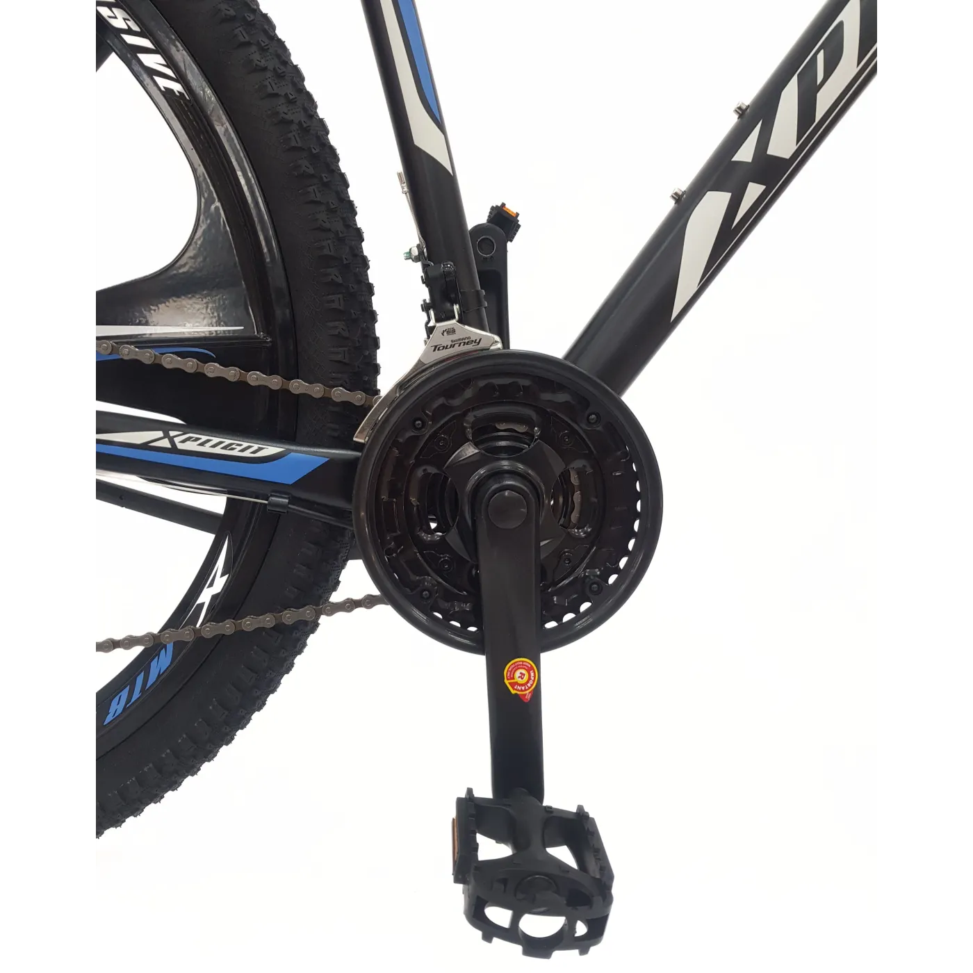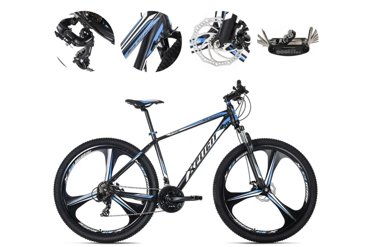 💎 29-calowy rower górski Xplicit firmy KS Cycling ma czarną ramę z kolorowymi naklejkami, dzięki czemu jest niezwykle modny. Model jest wyposażony w 21-biegową przerzutkę i wiele komponentów marki SHIMANO. Hamowanie obejmuje mechaniczne hamulce tarczowe.