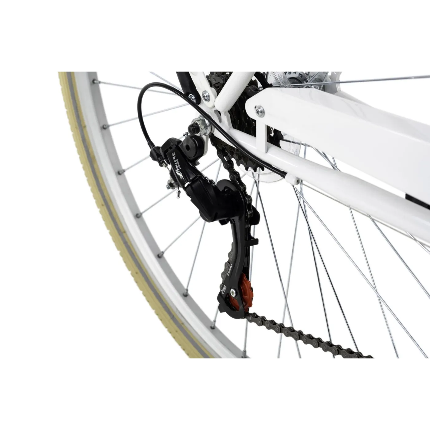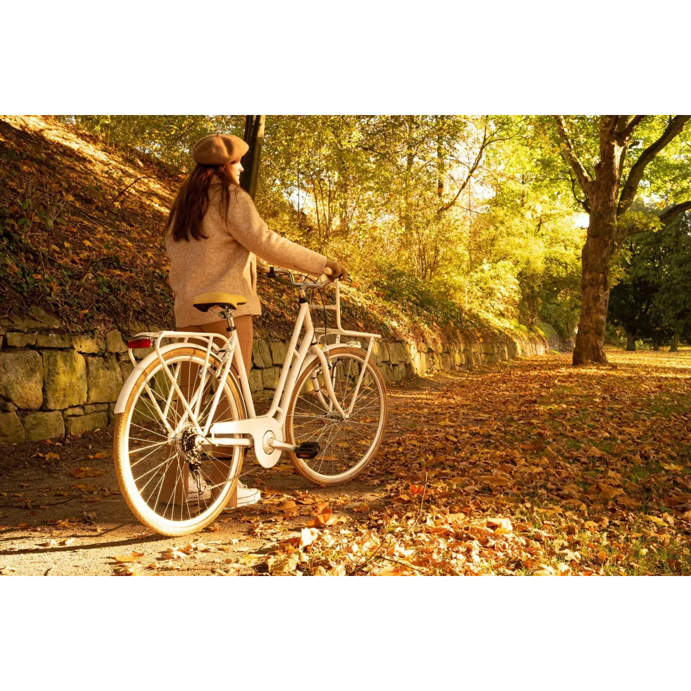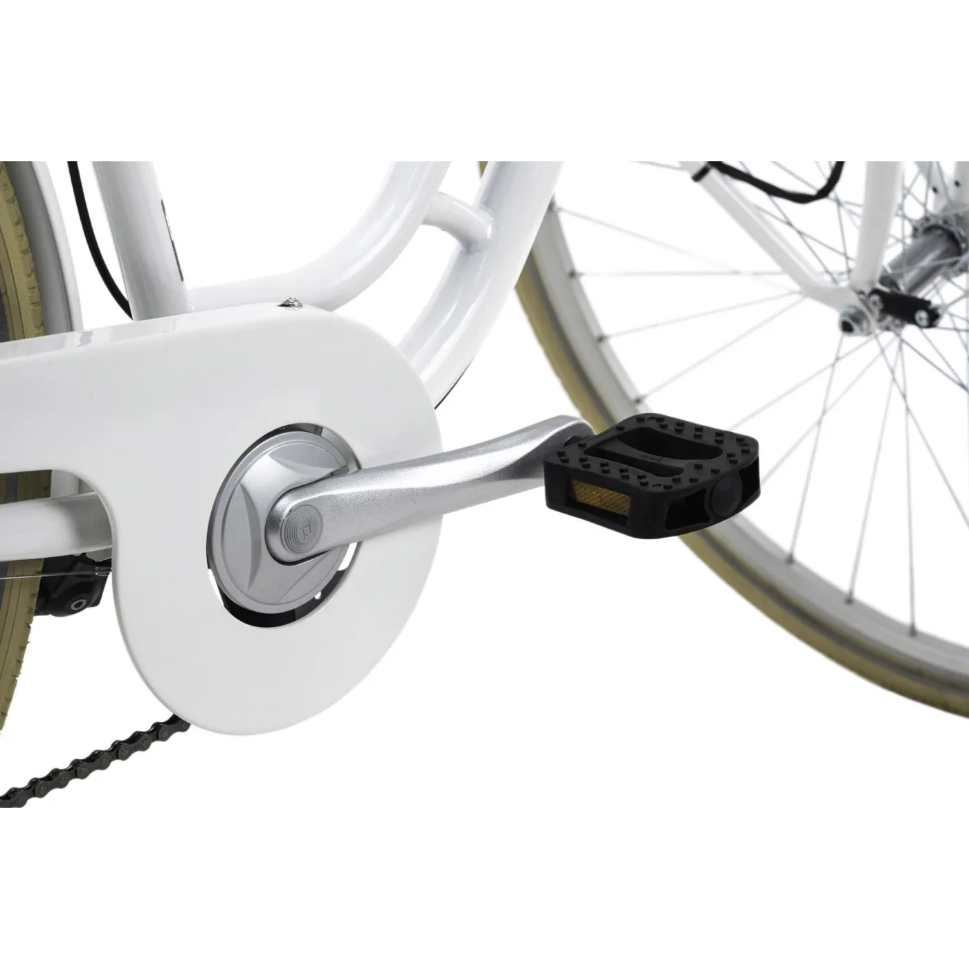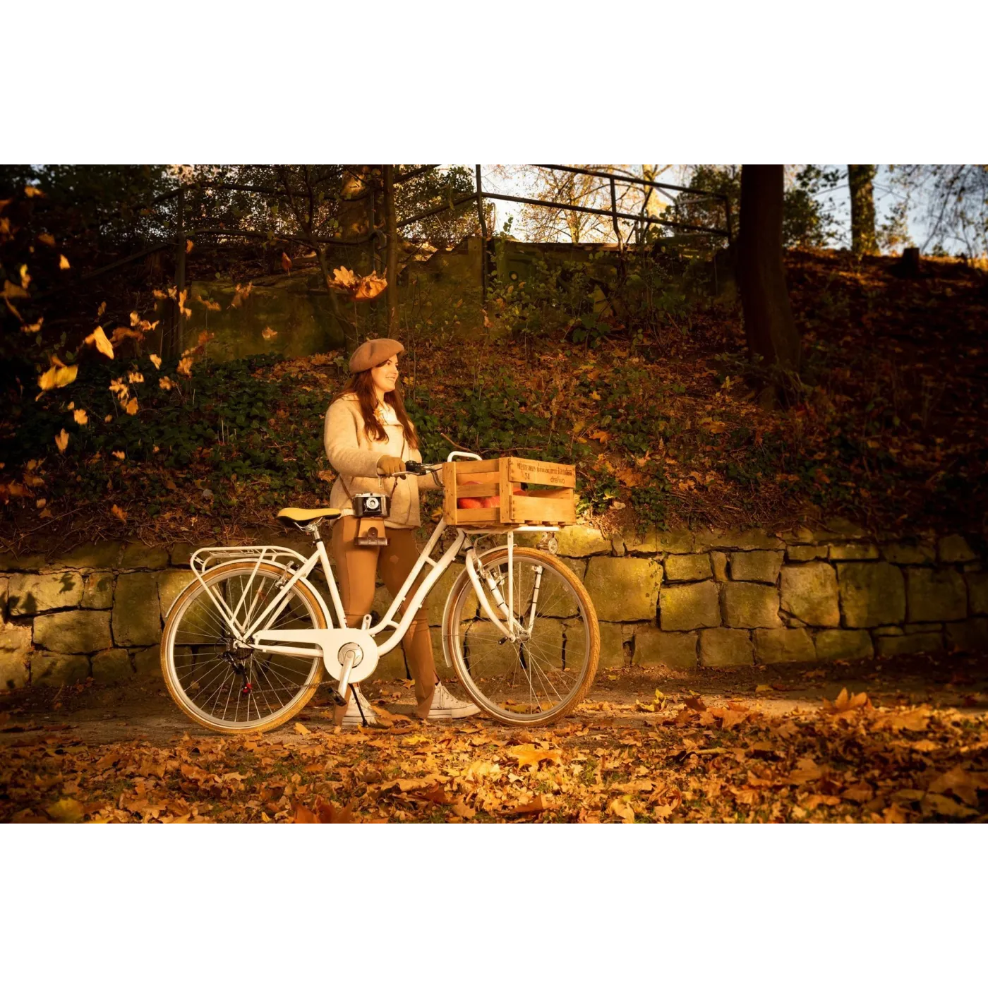 To nowoczesny rower ze stalową ramą i wieloma funkcjonalnymi komponentami. Przerzutka 6-biegowa firmy SHIMANO zapewnia relaksującą jazdę po mieście i dostosowuje się do Twoich indywidualnych potrzeb, a oświetlenie zasilane dynamo zapewnia bezpieczeństwo podczas jazdy po zmroku. Ponadto, rower ma wiele elementów bezpieczeństwa, takich jak błotniki, osłona łańcucha, zestaw oświetlenia zasilanego dynamo i skuteczne hamulce V-brake.