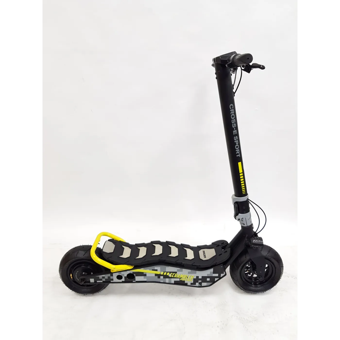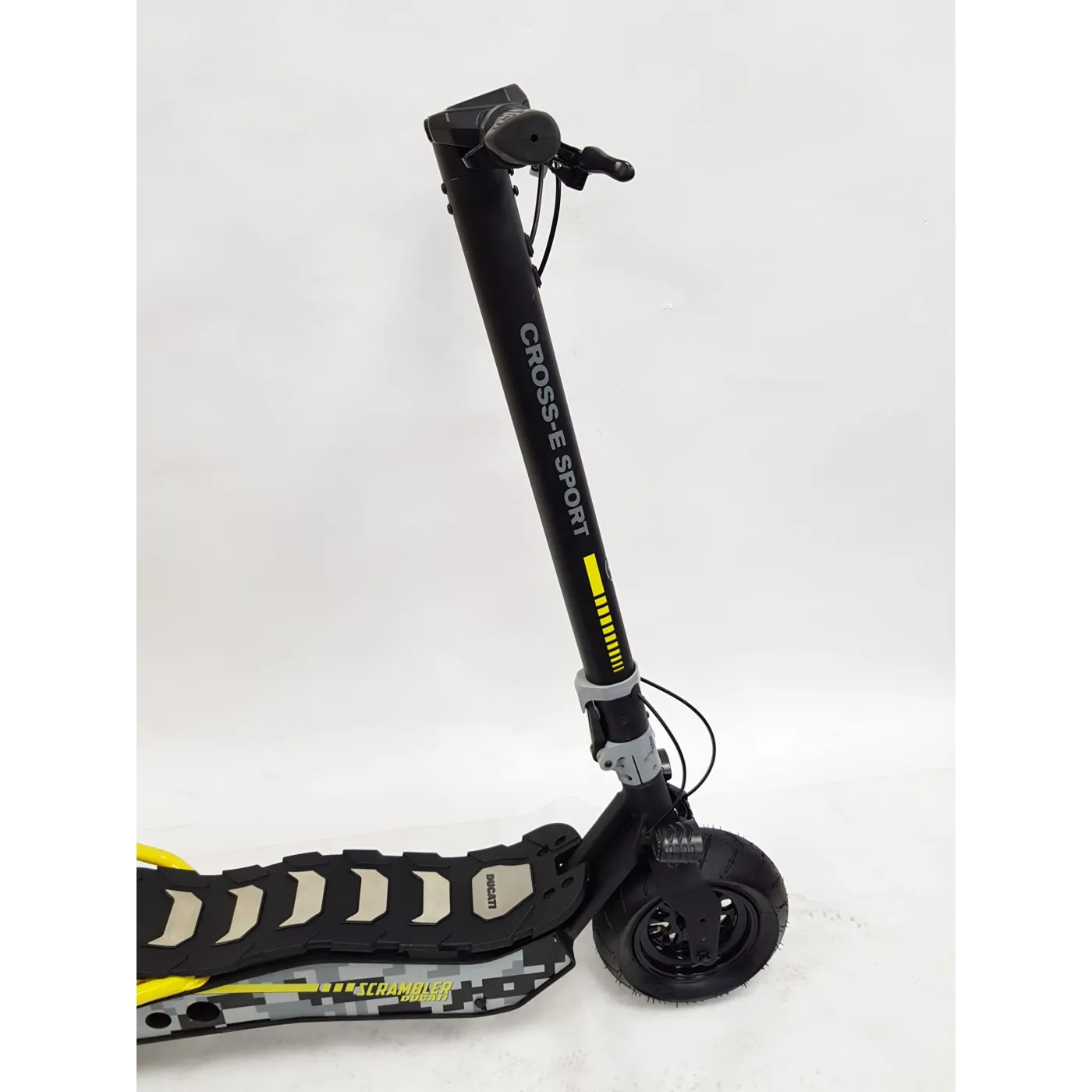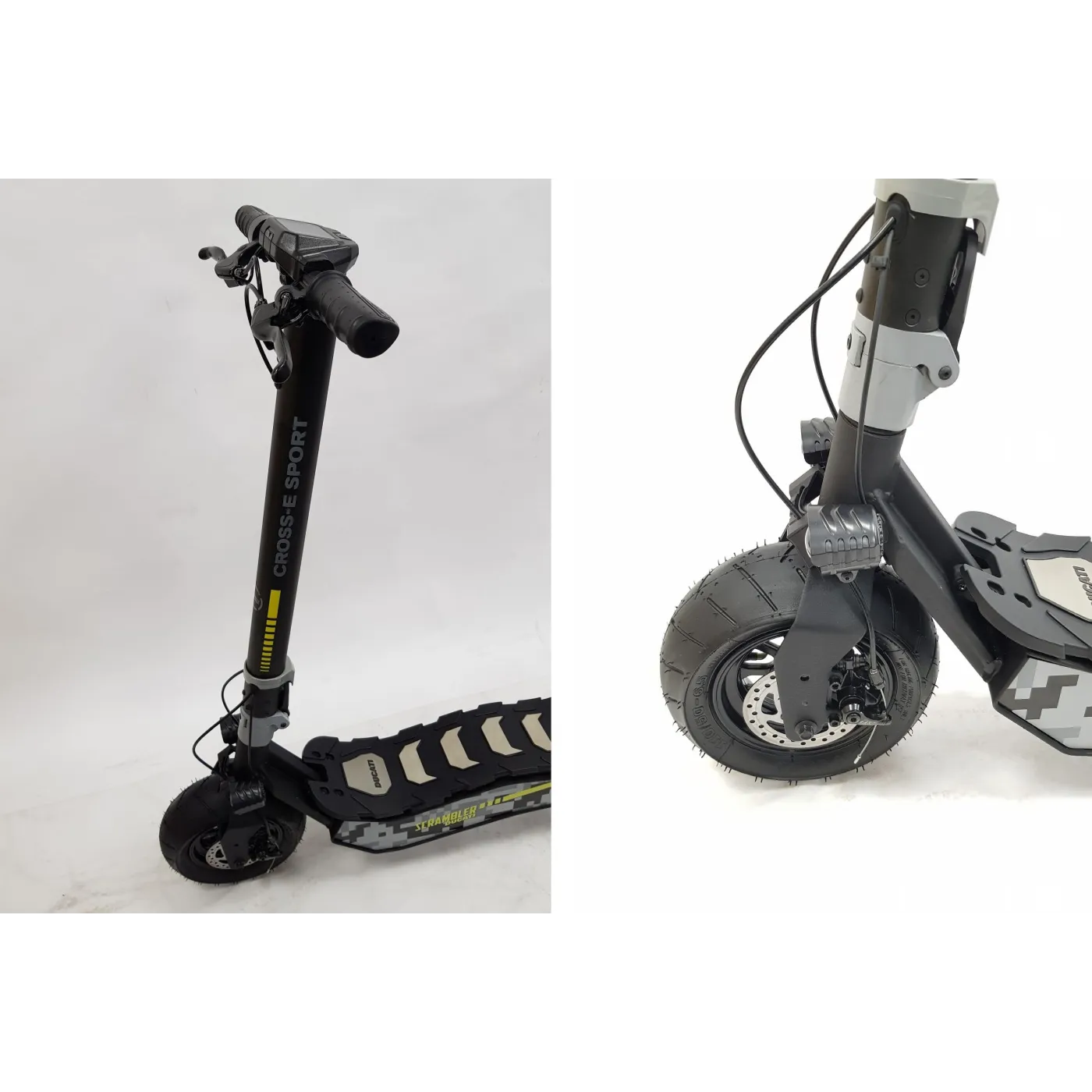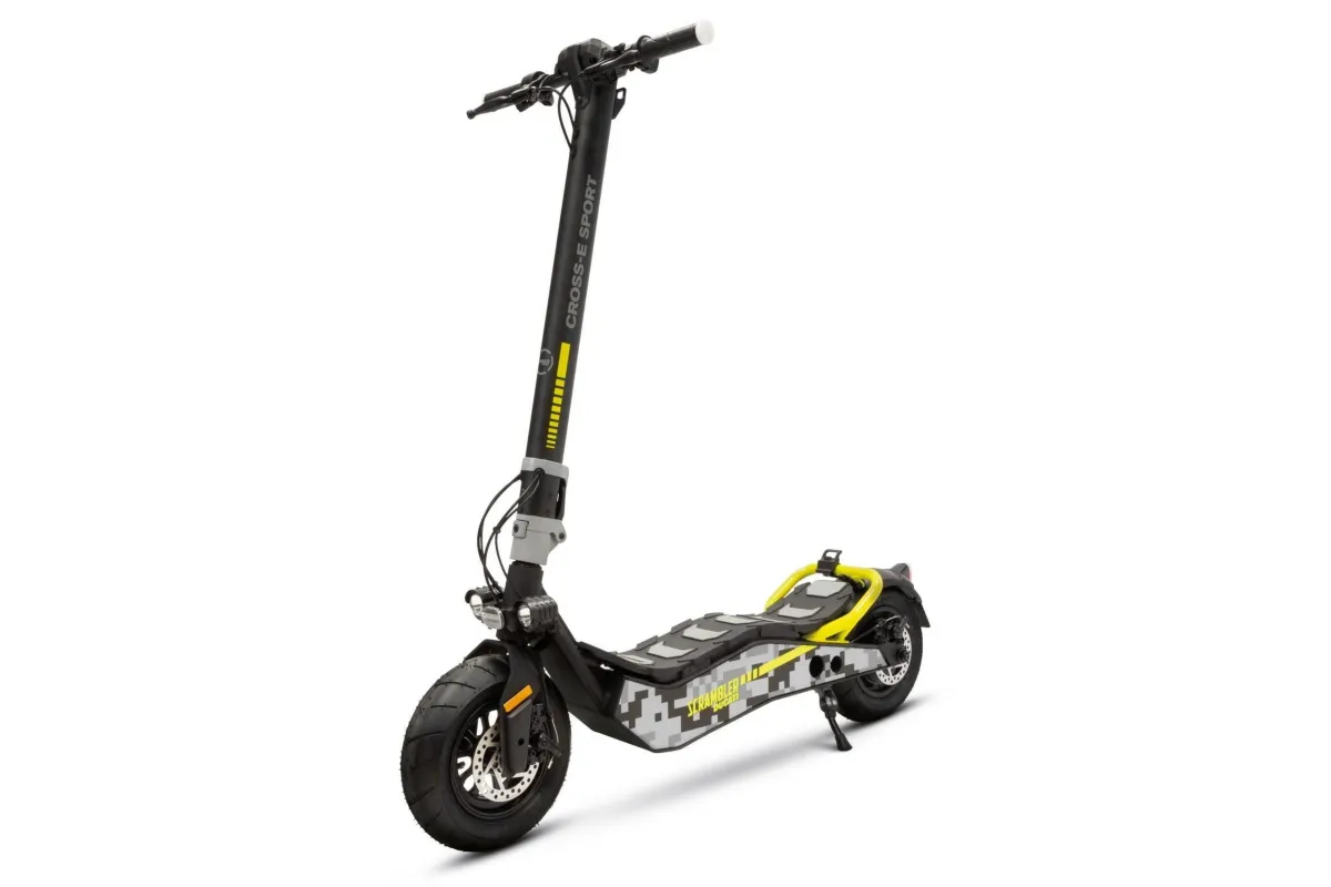 Wyposażony w ulepszony akumulator, skuter elektryczny CROSS-E SPORT, marki Scrambler Ducati, gwarantuje jeszcze wyższą wydajność pod względem autonomii, a także większą szybkość reakcji po uruchomieniu. Jest idealny dla tych, którzy muszą łatwo poruszać się po mieście i szukają zwinnego pojazdu. Charakter hulajnogi CROSS-E SPORT definiuje moc oferowana przez akumulator 499 Wh i tylny silnik bezszczotkowy 500 W, które gwarantują autonomię do 45 km. Jazda jest również łatwa na nierównych lub gruntowych drogach dzięki "grubym" kołom. Ich ponadprzeciętna szerokość pozwala na łatwiejsze pokonywanie małych wybojów lub nagłych wzniesień w nawierzchni drogi. Zastosowanie opon bezdętkowych eliminuje ryzyko przebicia opony.