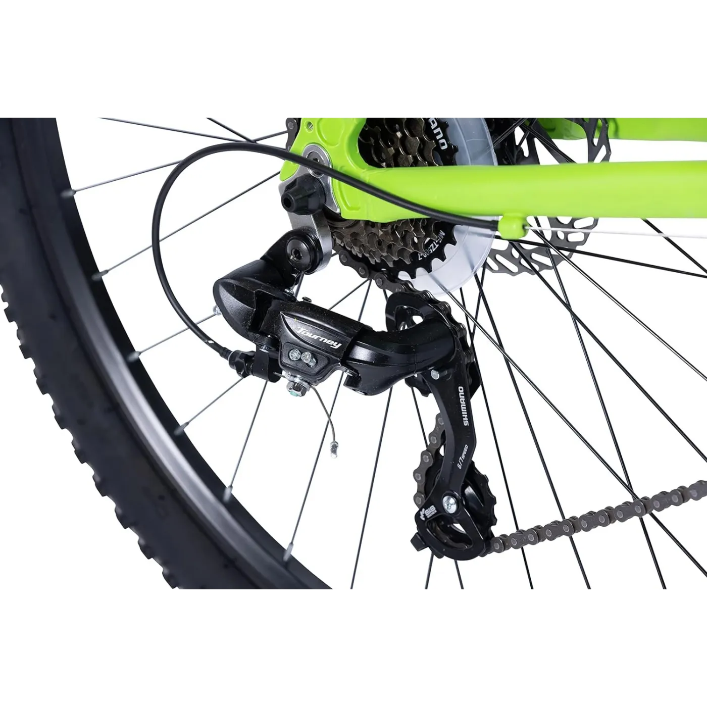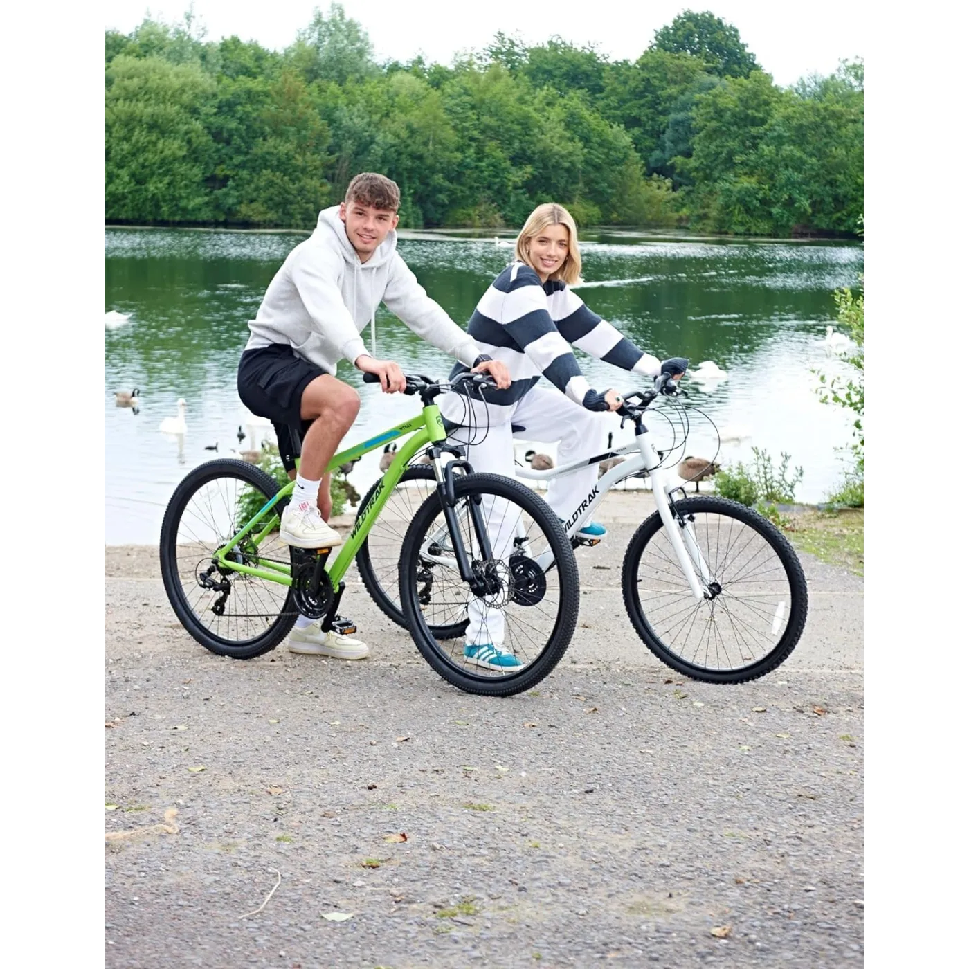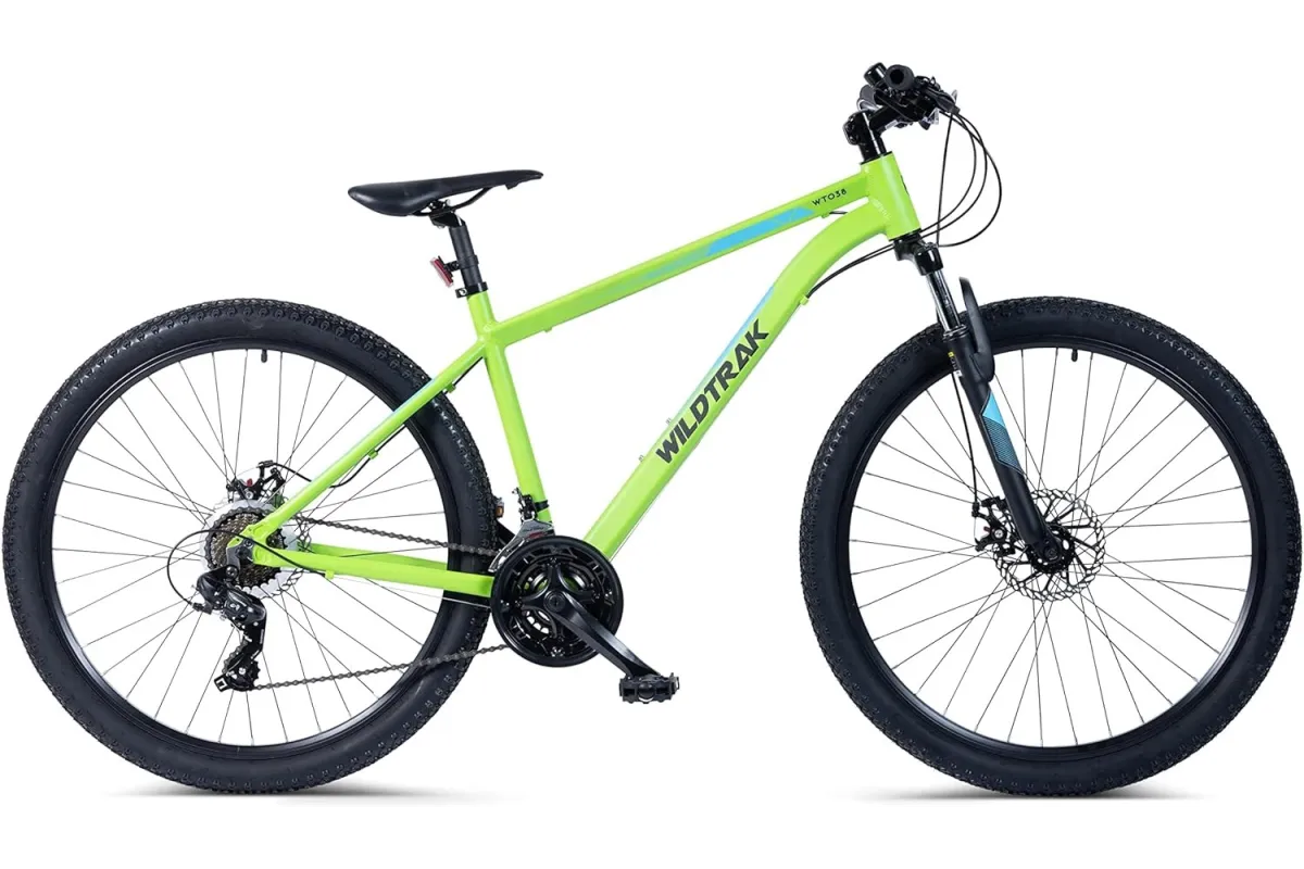 Jeśli wyruszyć na górską wycieczkę to tylko z Wildtrak! Ten rower górski z 26-calowymi kołami i 21 biegami zachwyca eleganckim i przykuwającym wzrok zielonym kolorem. Został wyposażony w mocne przednie i tylne hamulce tarczowe zapewniające skuteczne hamowanie. Zastosowane 27,5-calowe dwukomorowe felgi aluminiowe z wytrzymałymi oponami 27,5" x 2,1" nadają się do użytku na różnych nawierzchniach.