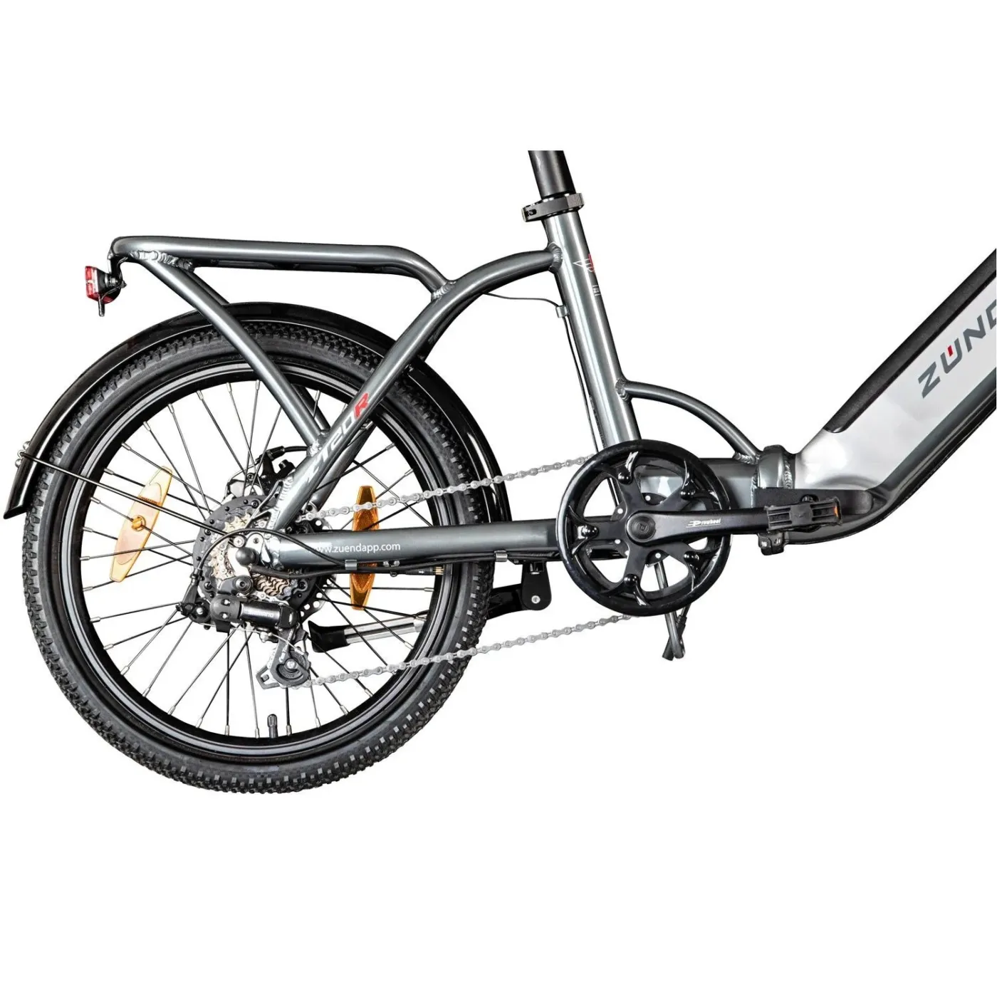 🚲 Składany Zundapp ZT20R łączy w sobie zalety konwencjonalnego roweru składanego z napędem elektrycznym, dzięki czemu jest elastycznym, przyjaznym dla środowiska środkiem transportu w miastach. Nadaje się zarówno do dojazdów do pracy, jak i na zakupy, łącząc codzienny sportowy charakter z praktycznością.