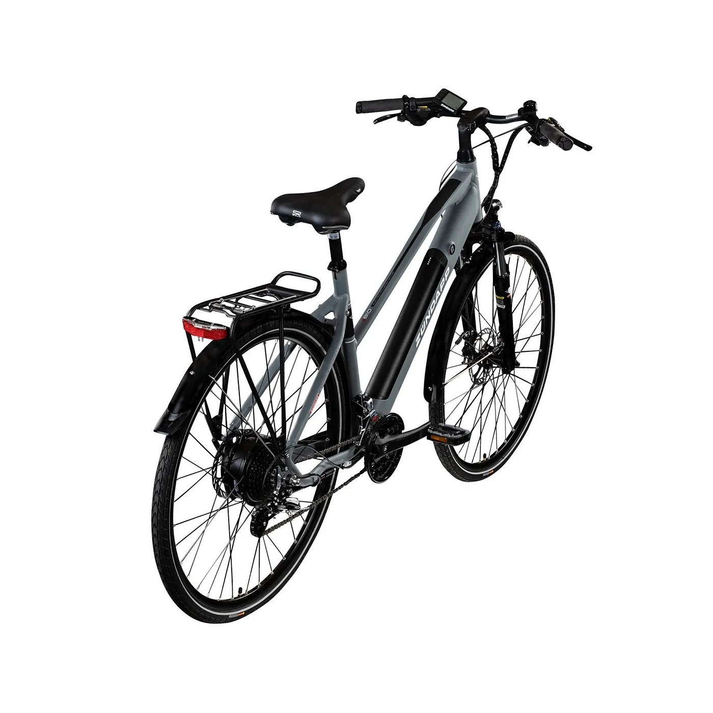 Ten piękny, wytrzymały rower poradzi sobie z długimi podróżami lub codziennym użytkowaniem bez żadnych problemów. Łatwa obsługa i bogate wyposażenie czynią z niego Twojego nowego najlepszego przyjaciela na dwóch kółkach! Lekka trapezowa rama wykonana z aluminium zapewnia najlepsze właściwości jezdne i całkowicie ukrywa akumulator w dolnej rurze. Mocny silnik piasty na tylnym kole zapewnia delikatne podparcie dzięki mocy 250 watów. Poziomy wsparcia są wybierane za pomocą przejrzystego wyświetlacza LCD , który zapewnia również pomoc w pchaniu i najważniejsze dane dotyczące jazdy.