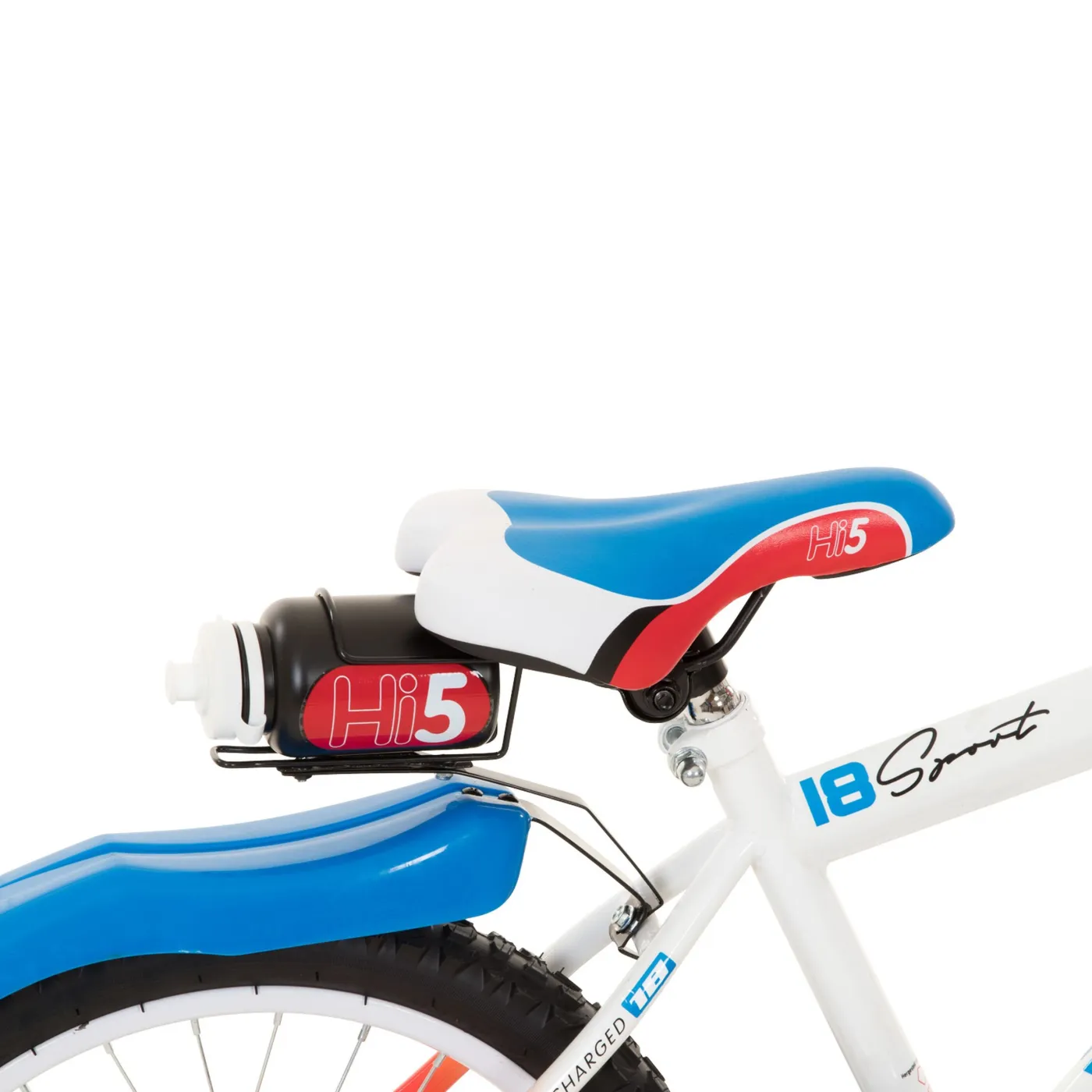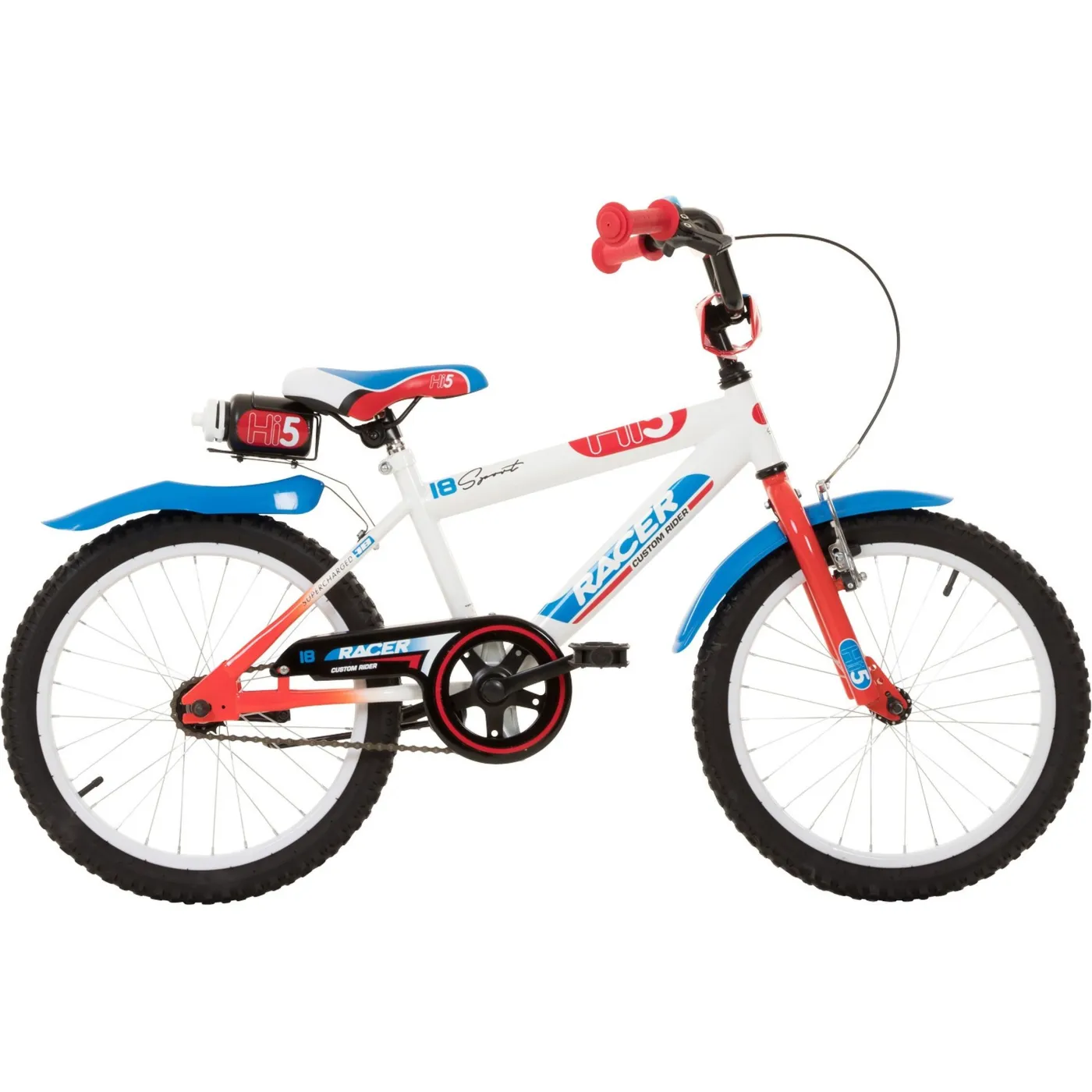 Elegancki 18-calowy rower dziecięcy Racer firmy HiFive w fajnym designie sprawia, że spełniają się dziecięce marzenia! Zapewnia duże bezpieczeństwo i pozwala dzieciom uczyć się jeździć w zabawny sposób. Racer ma solidną stalową ramę, która jest wystarczająco wytrzymała, aby dzieci mogły go używać na co dzień. Szeroka kierownica jest łatwa do trzymania, a wyściółka zapewnia bezpieczeństwo w razie upadku. Rower dziecięcy Hi5 posiada napęd bez przerzutek, którego łańcuch ukryty jest za zamkniętą plastikową osłoną łańcucha. Ta osłona łańcucha nie tylko zapobiega splątaniu i zabrudzeniu odzieży, ale ma również odpowiednią konstrukcję - zarówno rodzice, jak i kierowcy są z niej zadowoleni. W zestawie znajduje się także bidon z uchwytem, dzięki któremu młodzi rowerzyści będą mieli zapewnioną odpowiednią ilość płynów podczas każdej przygody.