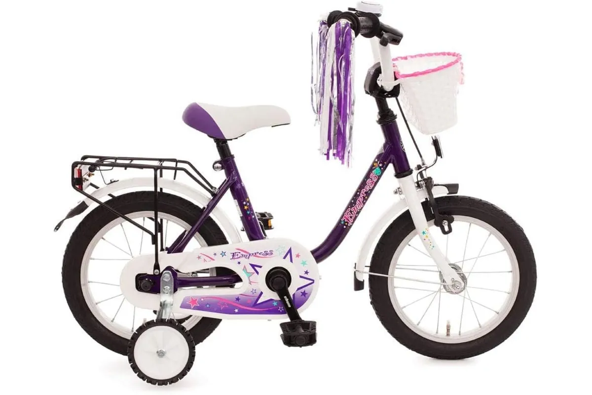 Empress Lila to rower o ciekawym wzornictwie, odpowiedni dla dzieci, który szczególnie zachwyci małe dziewczynki. W przednim koszyku lub na bagażniku można bez problemu zmieścić butelkę na napoje lub ulubionego misia. Koła podporowe można zdjąć, gdy dziecko będzie jeździło bezpieczniej. Rower jest również wyposażony w hamulec ręczny i nożny. Nie zapomniano o dzwonku, czy tapicerce kierownicy.
