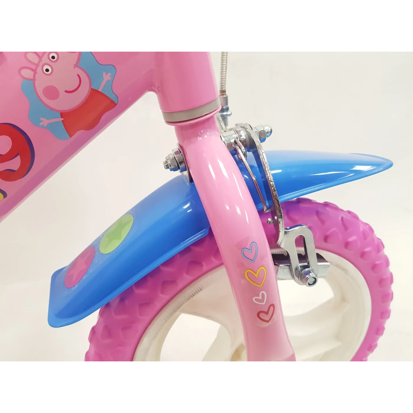 Pozwól, aby oczy dzieci zabłysły dzięki rowerowi Świnka Peppa. Posiada duży bagażnik dla lalek z paskiem z tyłu roweru. Duże, wygodne siodełko i kierownica mają regulowaną wysokość. Rower dziecięcy posiada ponadto regulowane, odpowiednie dla dzieci uchwyty hamulcowe i bezpieczne uchwyty kierownicy z ochroną przed uderzeniami. Dodatkowo wyposażony w hamulec przedniego koła i stały system tylnego koła. Odpowiednie dla dzieci pedały zapewniają bezpieczną jazdę bez wolnobiegu. Nadaje się dla dzieci w wieku od 2 do 5 lat.