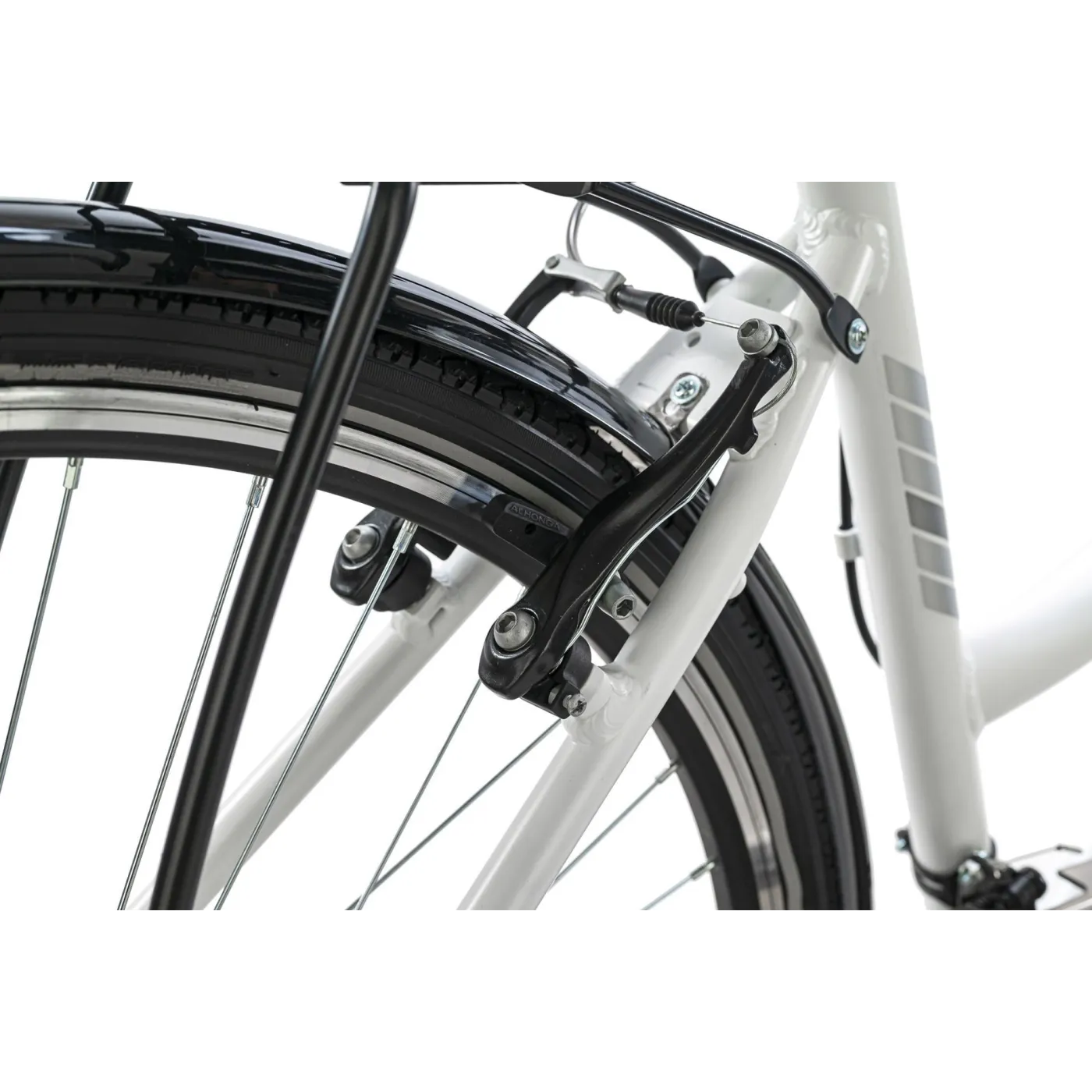 Dzięki 21-biegowym przerzutkom SHIMANO, jazda jest jeszcze łatwiejsza i przyjemniejsza. Płaska kierownica turystyczna zapewnia dobrą kontrolę nad rowerem. Dzięki amortyzowanemu widelcowi małe nierówności na trasie prawie nie istnieją, a dzięki systemowi oświetlenia jesteś zawsze bezpieczna na drodze. Hamowanie odbywa się za pomocą hamulców typu V.