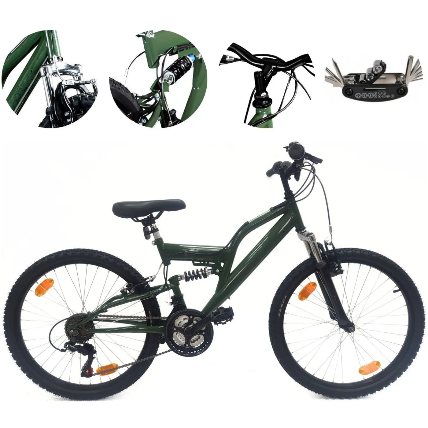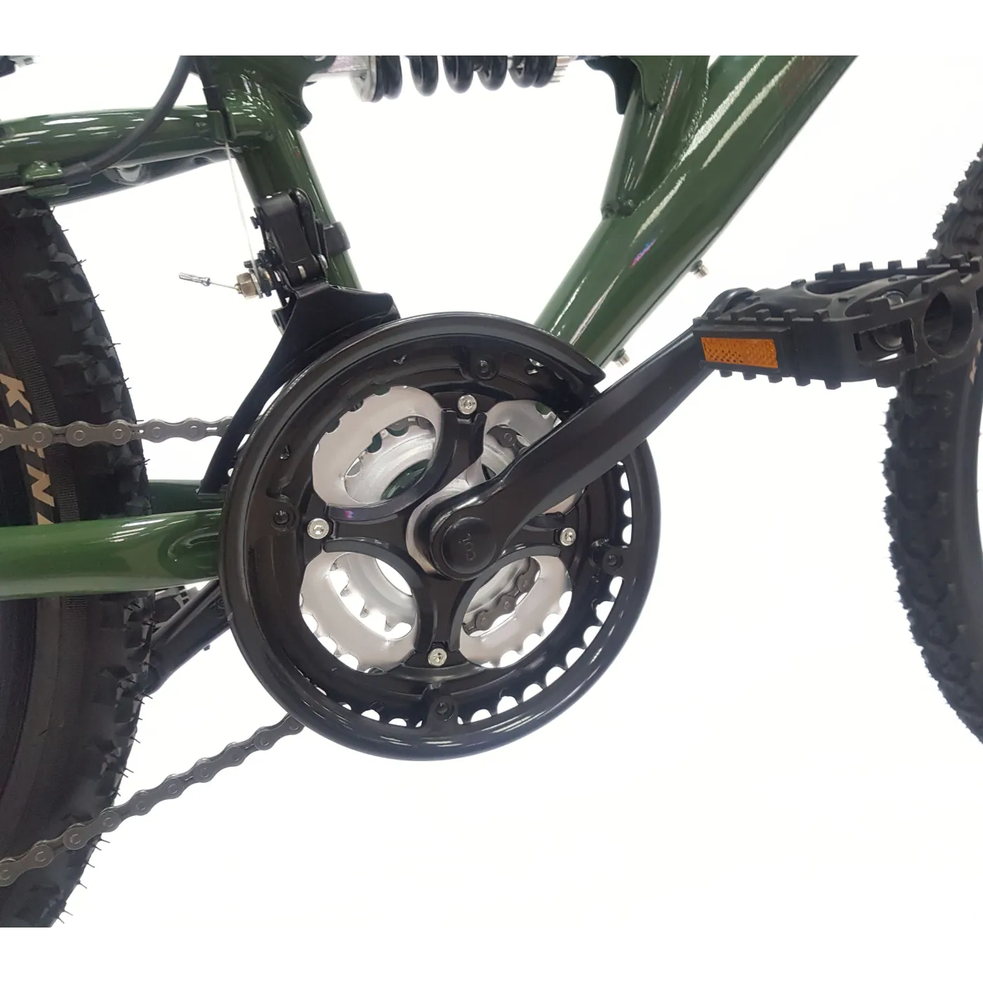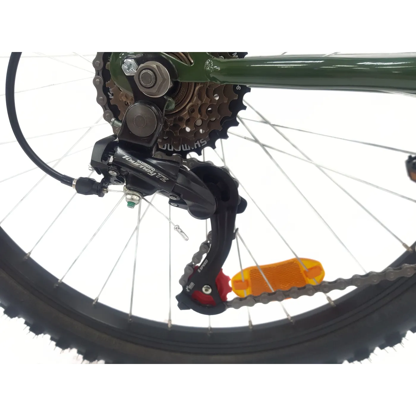 Ciemne opony i design w zielonym kolorze sprawiają, że rower przyciąga wzrok.