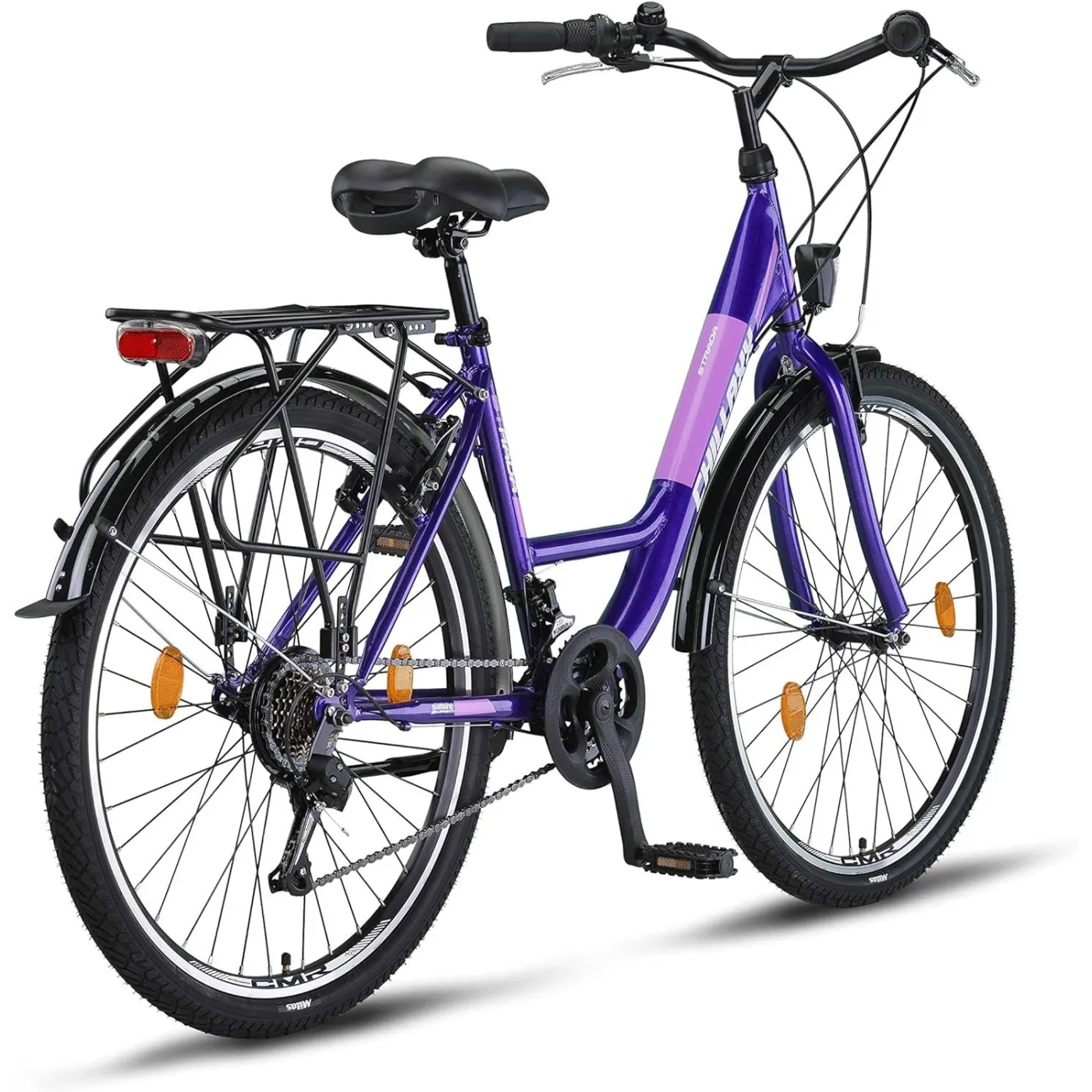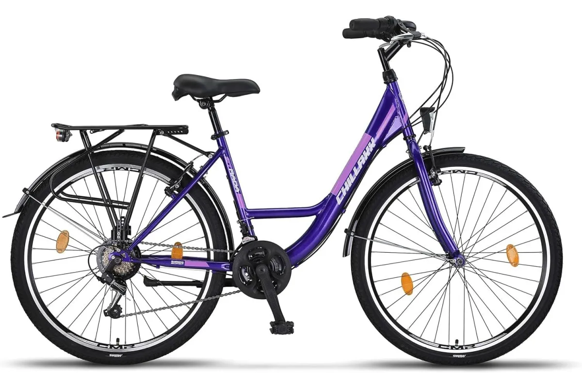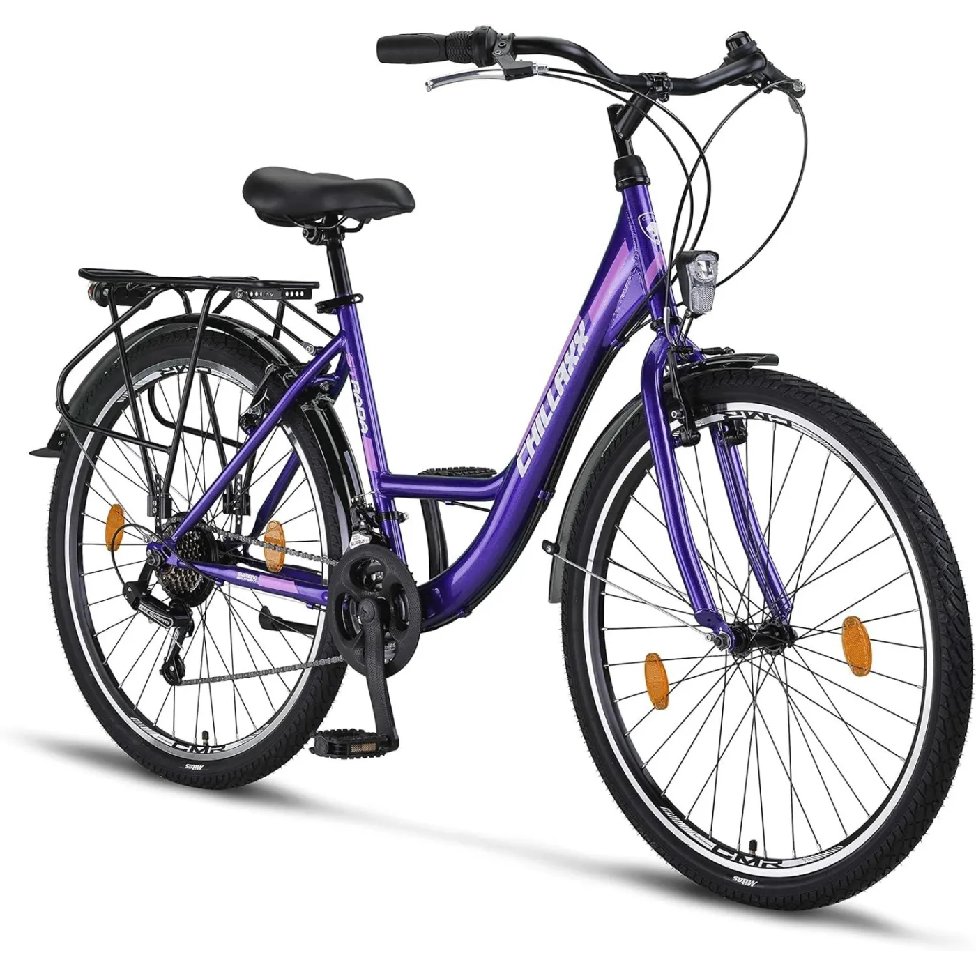 Brokatowy fiolet ramy w 26-calowym rowerze Strada Premium firmy Chillaxx Bike sprawia, że wygląda nietuzinkowo i nadaje mu prawdziwej elegancji.