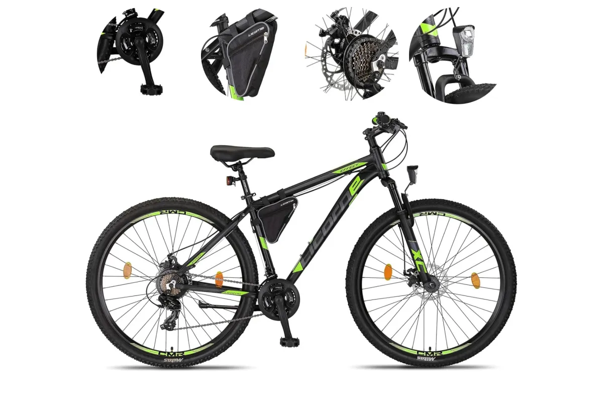 🌄 Rower wyposażono w koła 29 cali z oponami 29x2.10, które sprawdzają się zarówno na szutrze, jak i w miejskich realiach. Duży rozmiar kół ułatwia pokonywanie przeszkód i zapewnia lepsze toczenie, co przekłada się na mniejsze zmęczenie przy dłuższej jeździe. Obręcze są wytrzymałe i przystosowane do obciążeń, jakie generuje jazda terenowa.