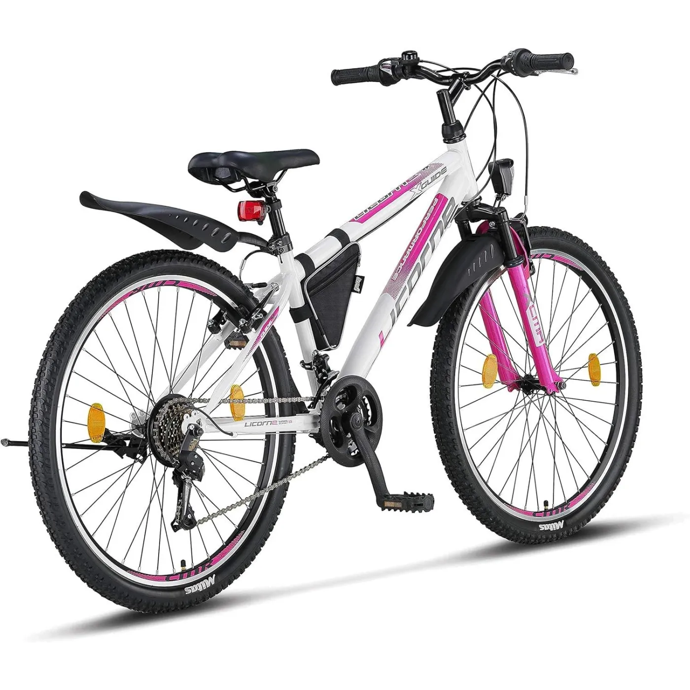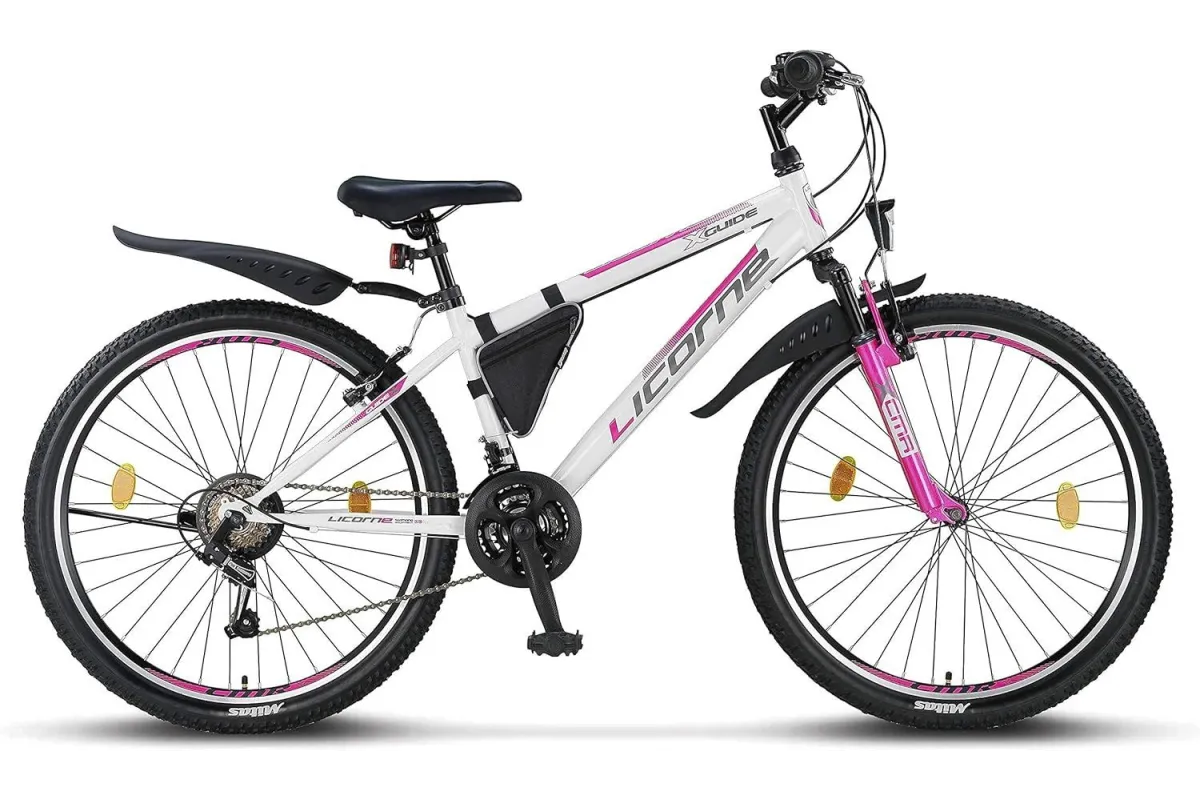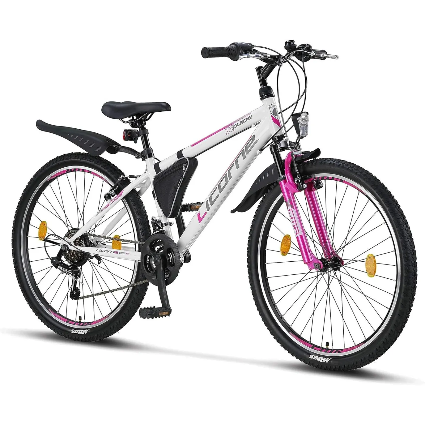 xGuide to prawdziwa "gwiazda" wśród dziewczęcych rowerów górskich. Ten model został stworzony z dbałością o każdy szczegół- począwszy od stylowej ramy z różowymi wstawkami, aż po 26-calowe opony. Ponadto xGuide posiada 21- biegowe przerzutki marki SHIMANO oraz wygodną manetkę do ich zmiany, a także hamulce v-brake, które zapewniają bezpieczne hamowanie. Dzięki niskiej ramie, ten góral jest idealny dla dziewczynek i niższych kobiet.