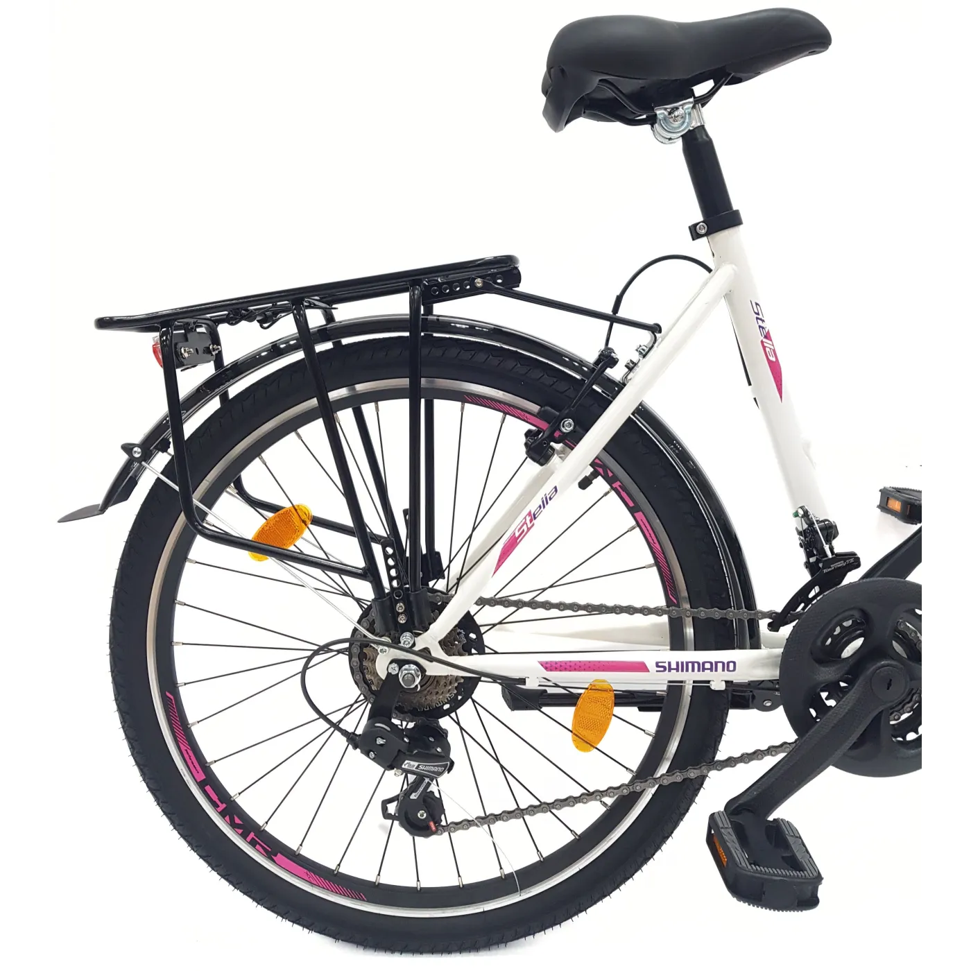Stella Premium to rowerek miejski, który sprawi wiele radości Twojemu dziecku. Niezwykle modny biały kolor z różowymi akcentami nie tylko przyciąga wzrok – ten model przekona również wyposażeniem. 21-biegowa przerzutka gwarantuje wygodną i płynną jazdę. Każde dziecko z łatwością zmieni biegi dzięki intuicyjnej manetce obrotowej. Szeroka kierownica daje najlepszą możliwą kontrolę nad rowerem. Na bagażniku Twoja córka bez problemu przewiezie ulubionego misia, czy torebkę ze swoimi skarbami.