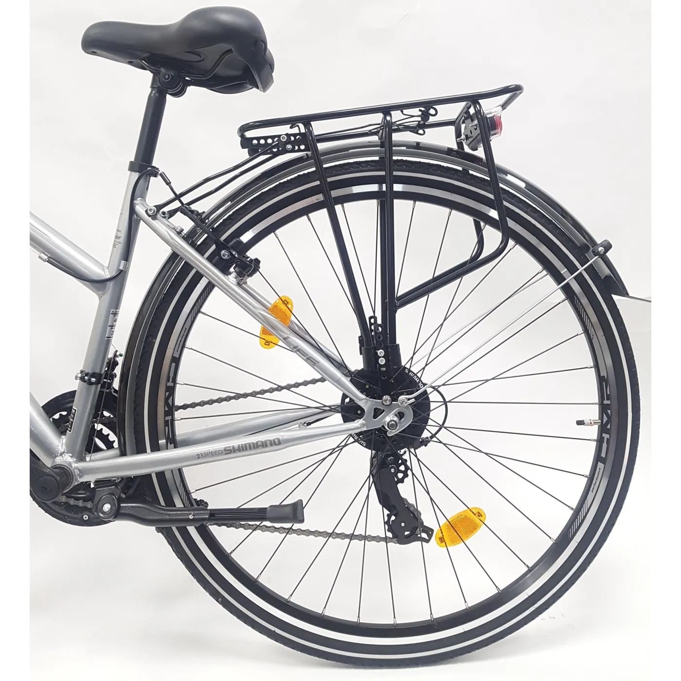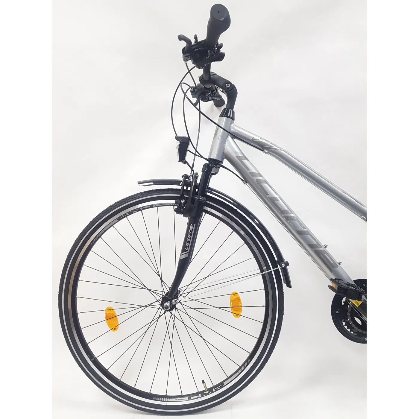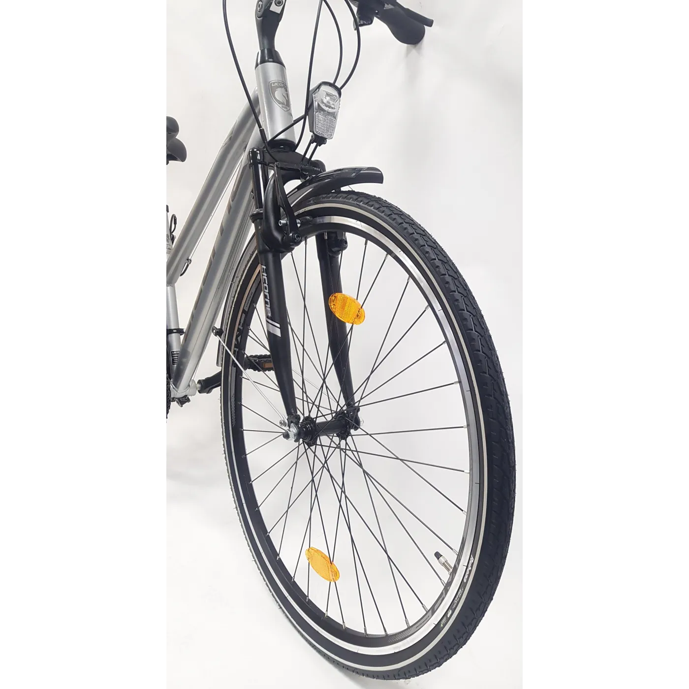 🛠️ System hamulców V-brake gwarantuje doskonałą kontrolę nad prędkością nawet w trudnych warunkach atmosferycznych. Dzięki bagażnikowi, dzwonkowi, oświetleniu, błotnikom i stopce, możesz cieszyć się jazdą w każdych warunkach.