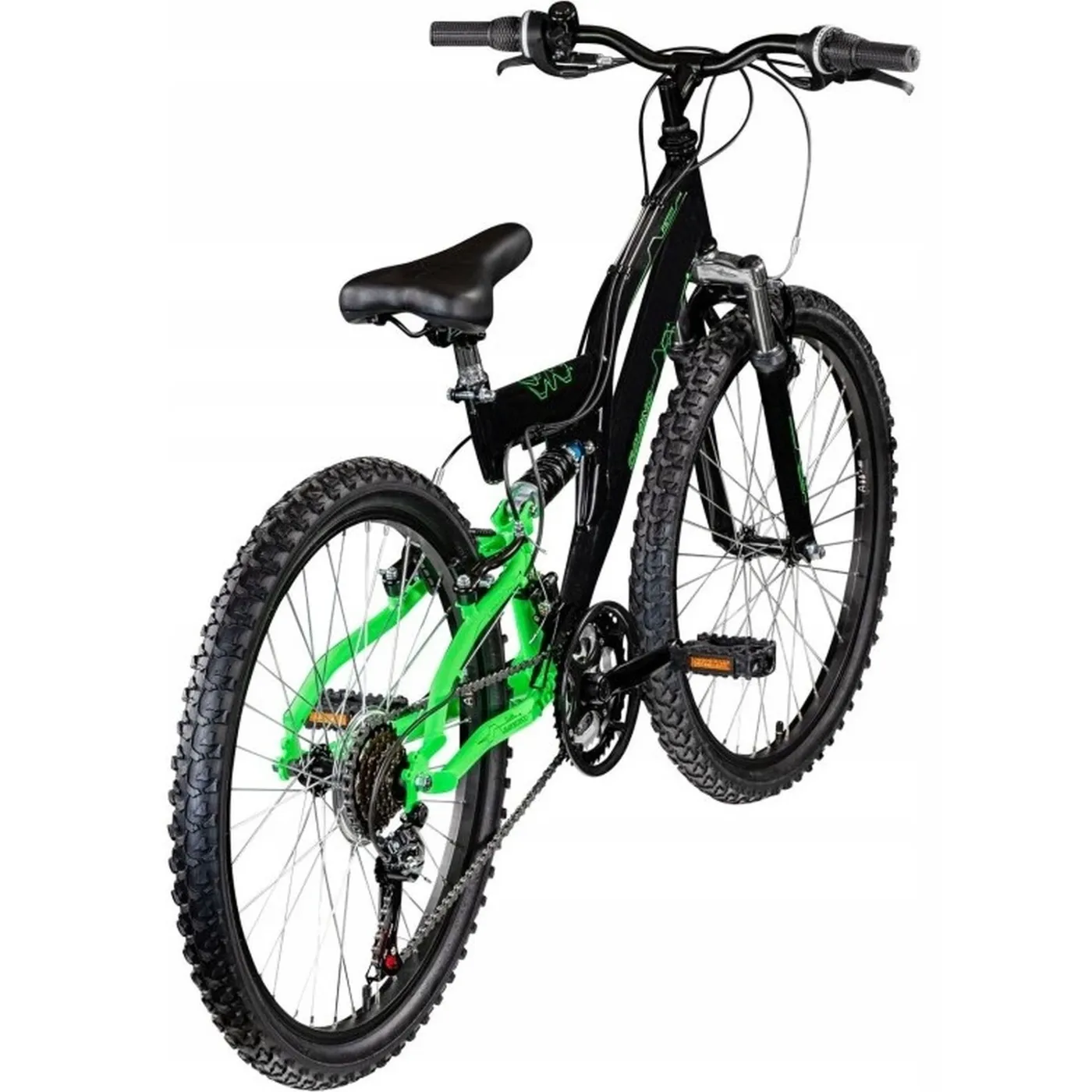 Rower Galano FS180 dzięki amortyzowanemu widelcowi i amortyzatorowi jest prawdziwym rowerem górskim. Posiada również poręczne opony rowerowe z profilem MTB do jazdy offroadowej. Zastosowane 18 biegów i mocne hamulce V-Brake na obu kołach zapewniają, że rower będzie prowadził się niezawodnie i bezpiecznie. Design na który wpływa elegancka kolorystyka sprawia, że wyróżnisz się w każdym miejscu.