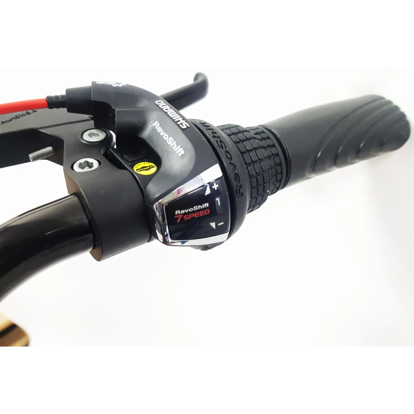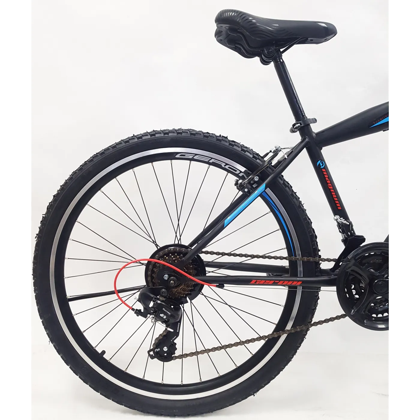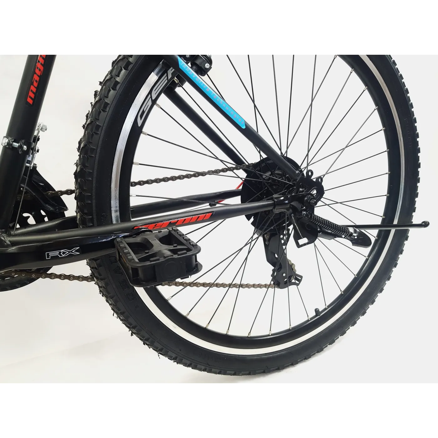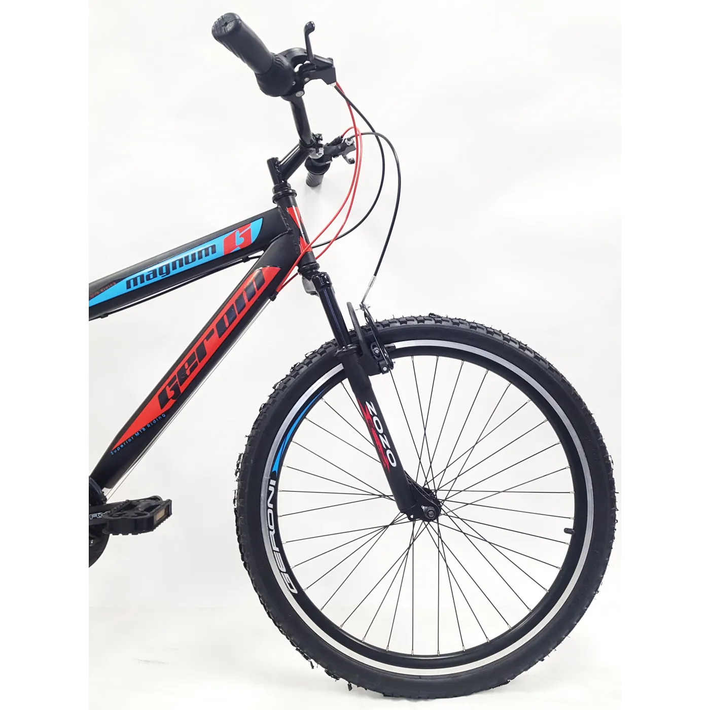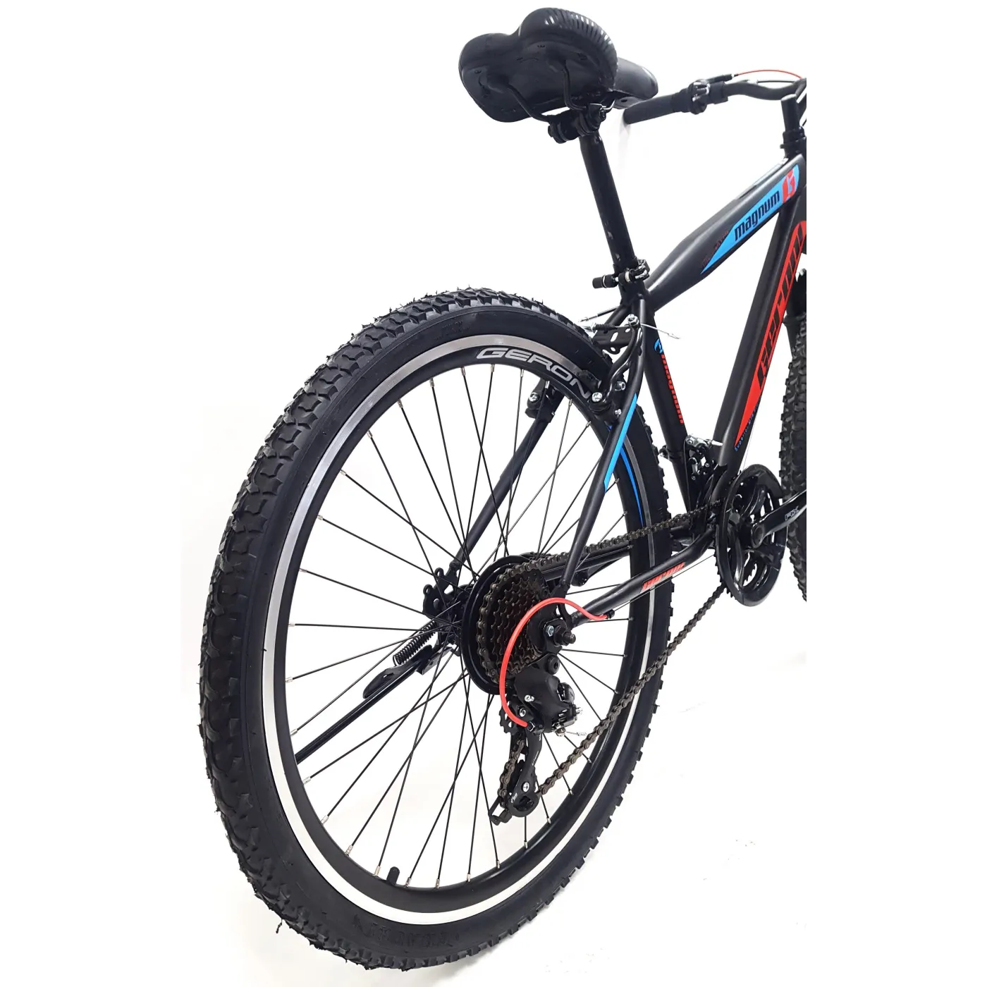 Rower górski 26" Magnum G marki Geroni, to świetny wybór. Czarna rama z kolorowymi akcentami zapewnia mu wyjątkowy wygląd, który na pewno przykuje uwagę każdego. 21-biegowa przerzutka SHIMANO gwarantuje płynną jazdę nawet podczas nieco dłuższych wycieczek i zapewnia niezawodne przełożenia. Dzięki nim nie zmęczysz się tak bardzo wjeżdżając pod górkę. Ponadto, bez problemu zmienisz biegi za pomocą intuicyjnej i prostej w obsłudze manetki obrotowej MicroShift. Lekko profilowana kierownica daje najlepszą możliwą kontrolę nad rowerem. Hamulce z przodu i z tyłu pozwalają na bezpieczne hamowanie w każdej sytuacji.