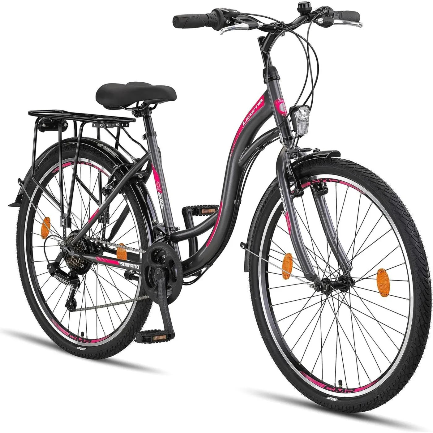 ✔️ Śliczny rower miejski, w stonowanym, szarym kolorze z różowymi elementami z pewnością przyciągnie wzrok niejednej mijanej osoby. Model Stella jest wyposażony w 21-biegową przerzutkę z komponentami SHIMANO, dzięki czemu jazda będzie komfortowa niezależnie od terenu.