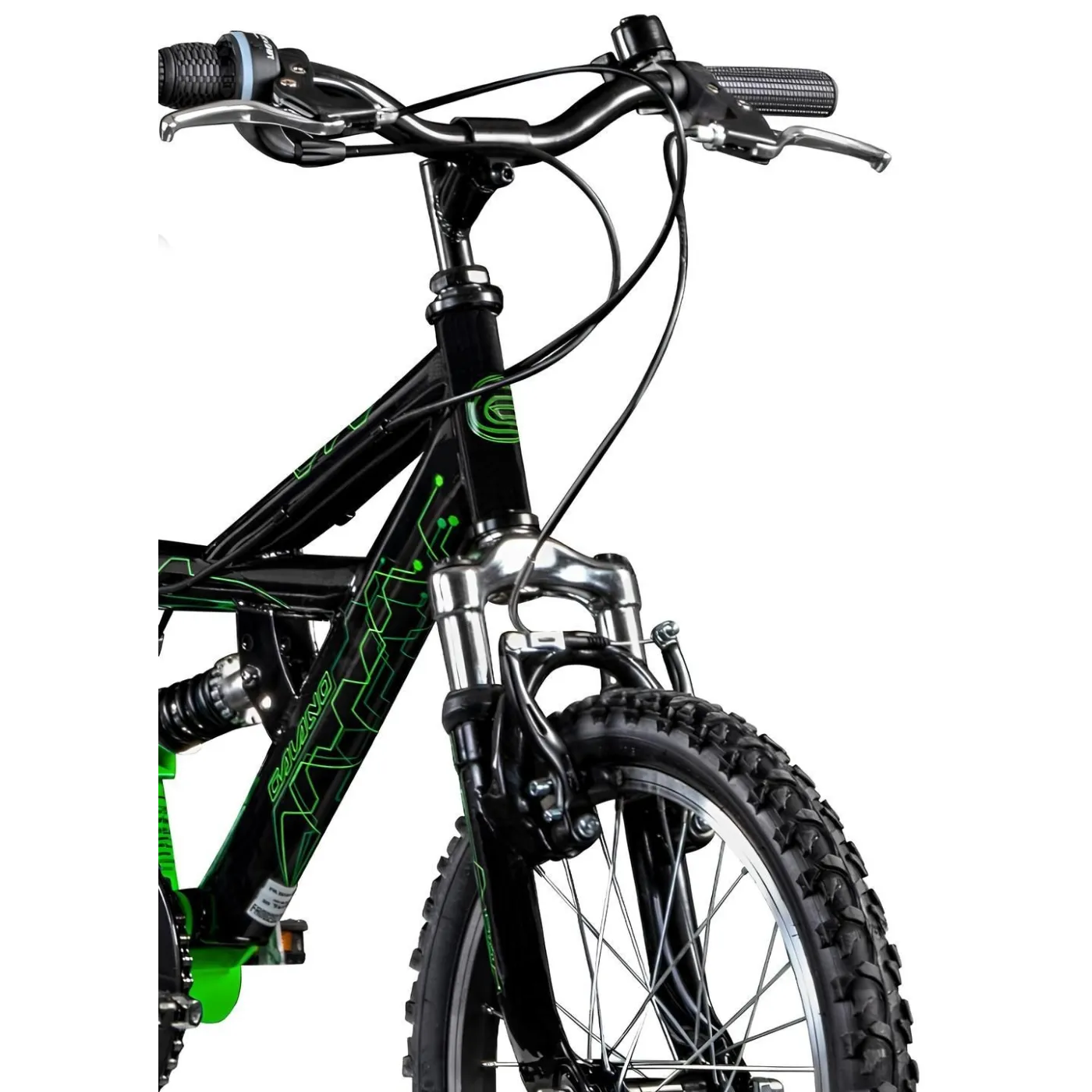 Ciemne opony i design w czarno-zielonym kolorze sprawiają, że rower przyciąga wzrok.