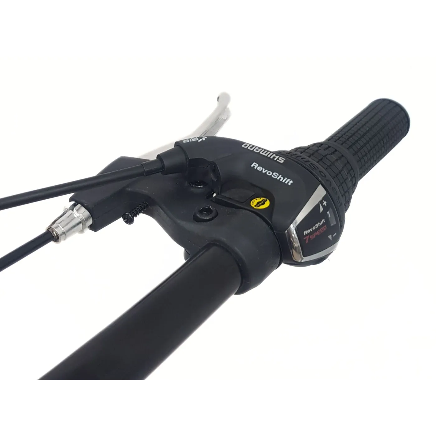 21 biegów zapewnia precyzyjną gradację i najlepszą jazdę w każdym terenie. Przerzutka tylna i przednia pochodzą od znanego producenta Shimano i charakteryzują się trwałością oraz niskimi wymaganiami konserwacyjnymi. Łatwe w użyciu manetki obrotowe zostały umieszczone na kierownicy.