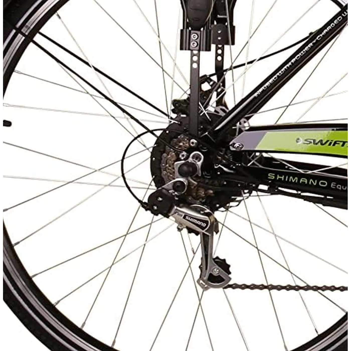 Elegancka i niska konstrukcja ramy nie tylko nadaje rowerowi elektrycznemu czarny wygląd, ale także ułatwia rowerzystom wsiadanie i zsiadanie, co jest bezpieczniejsze i odpowiednie dla szerszego przedziału wiekowego. Model wyposażono w mocny silnik o mocy 250 W z maksymalną obsługiwaną prędkością do 25 km/h zapewnia długą żywotność i wysoką wydajność. Rower wyposażono w 7 biegów, o bezpieczeństwo podczas hamowania zadbają zastosowane mechaniczne hamulce tarczowe z przodu oraz tyłu.