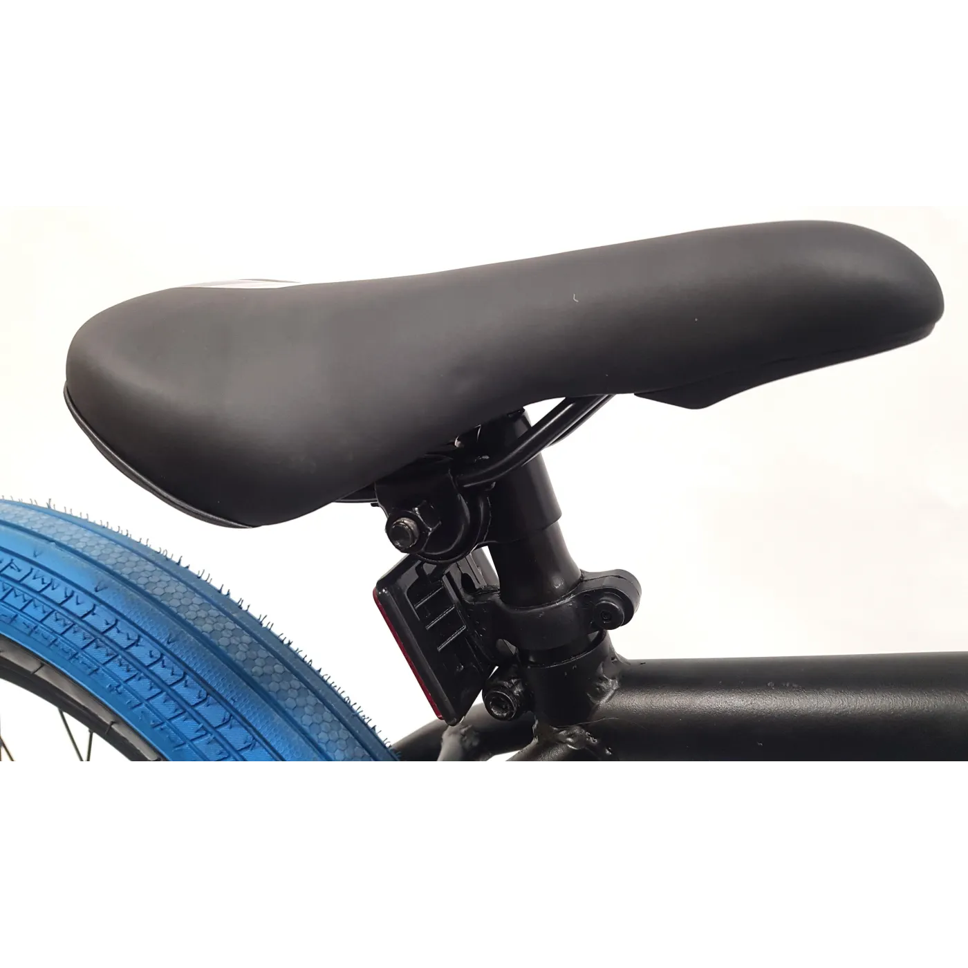 Z górną rurą o długości 52 cm i rozmiarem kół 20”, jest przeznaczony dla rowerzystów o wzroście od 145 do 175 cm i jest odpowiedni zarówno dla nastolatków, jak i dorosłych. Świeże kolory roweru pasują do każdej grupy wiekowej – prosta czarna rama jest wizualnie podkreślona plamami koloru na oponach, siodełku i uchwytach!