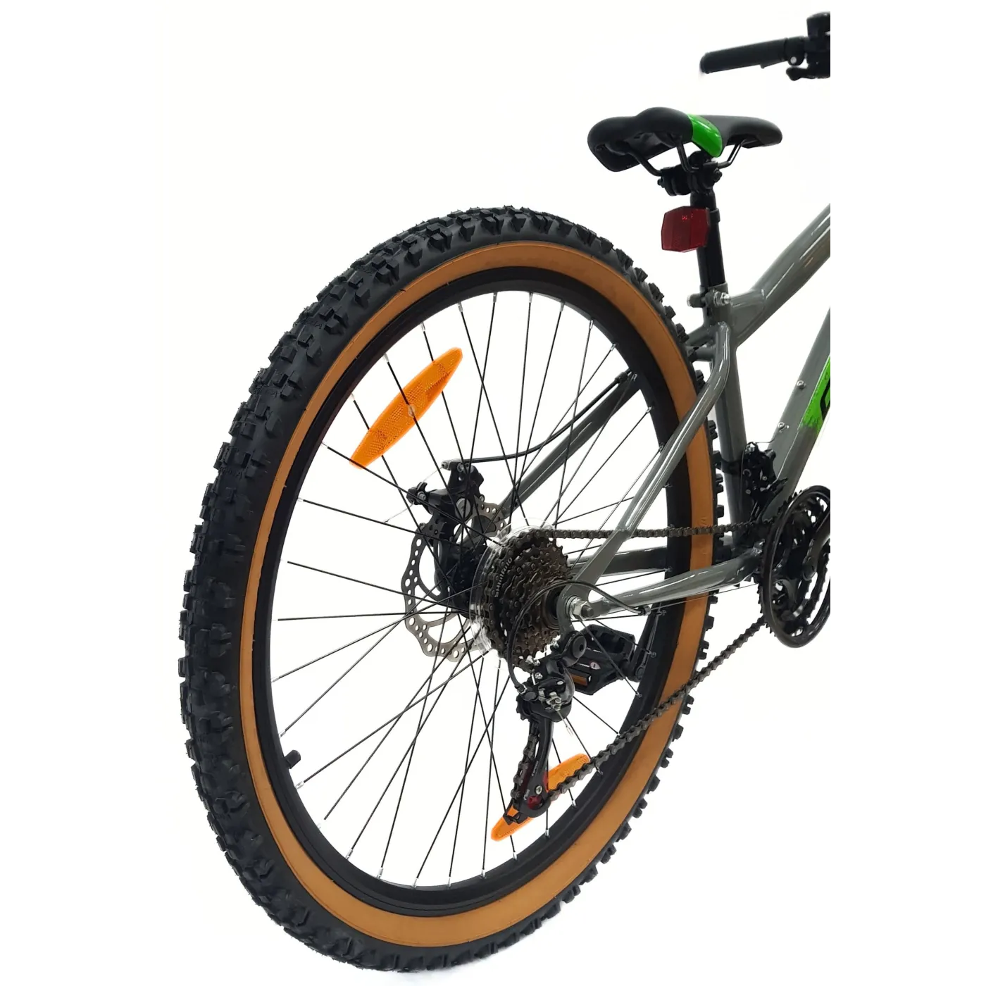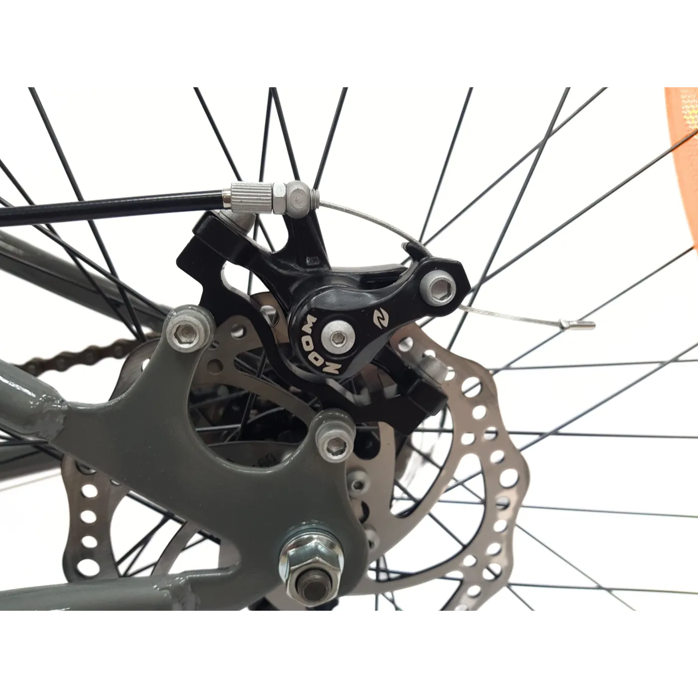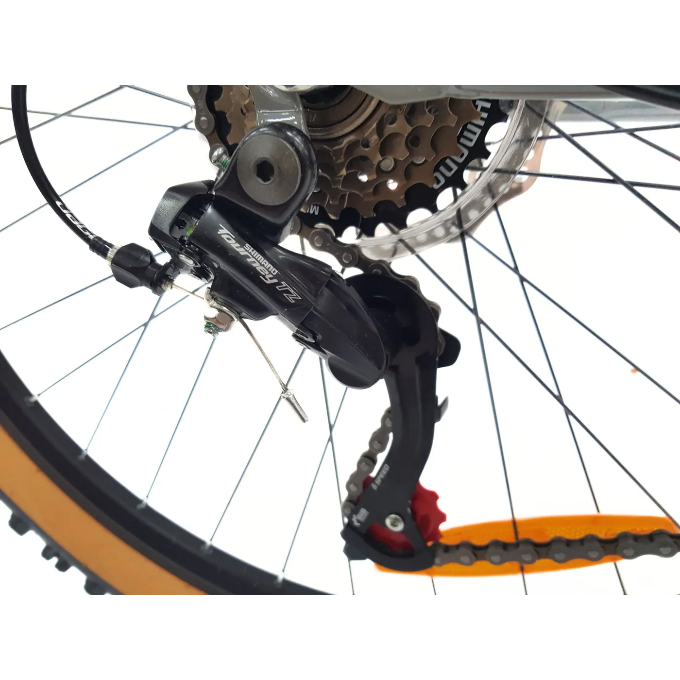 ⚙️ Wyposażony w 18-biegową przerzutkę Shimano Tourney oraz manetki cynglowe, rower umożliwia płynne zmiany biegów nawet na stromej nawierzchni. Dodatkowo, mechaniczne hamulce tarczowe wspierają pewne zatrzymywanie się w każdych warunkach atmosferycznych, co zwiększa bezpieczeństwo podczas jazdy.