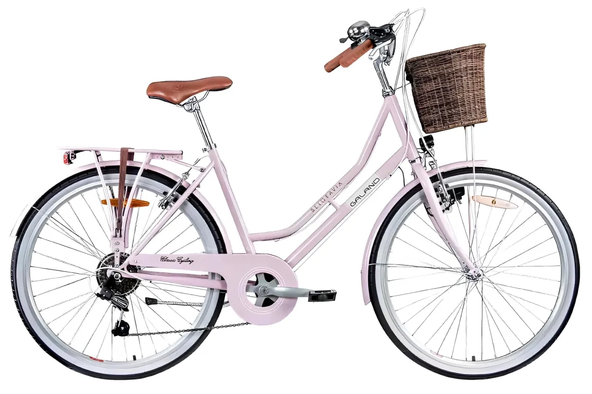 Galano Belgravia to piękny, klasyczny rower damski i dziewczęcy z kołami w rozmiarze 26 cali. Jeśli zwykłe rowery 28-calowe są dla Ciebie za duże, ten uroczy holenderski rower z koszykiem i bagażnikiem idealnie sprawdzi się na co dzień.
