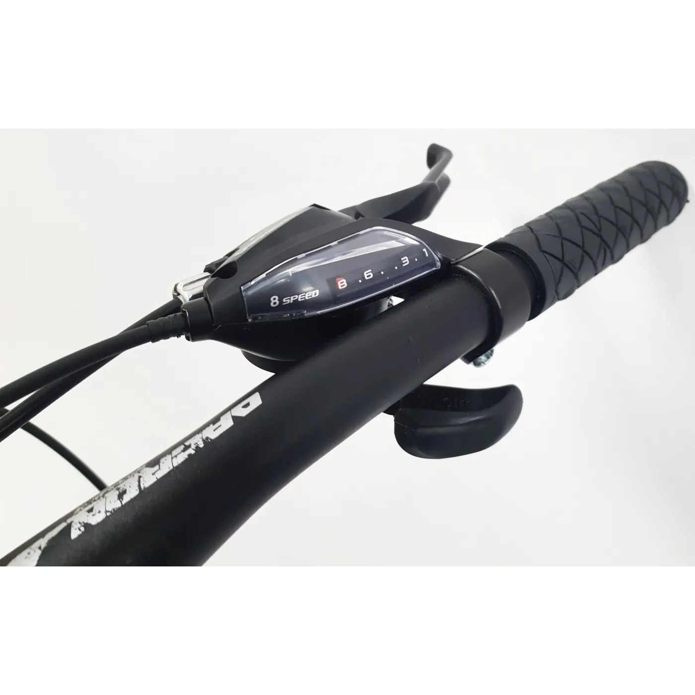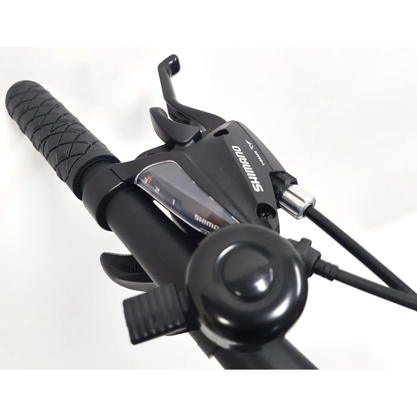 Rower jest wyposażony 24-biegową przerzutkę z komponentami SHIMANO. Niezbędne hamowanie zapewniają mechaniczne hamulce tarczowe z przodu i z tyłu. Dodatkowo, ergonomiczne siodełko idealnie wpasowuje się w ogólny obraz.