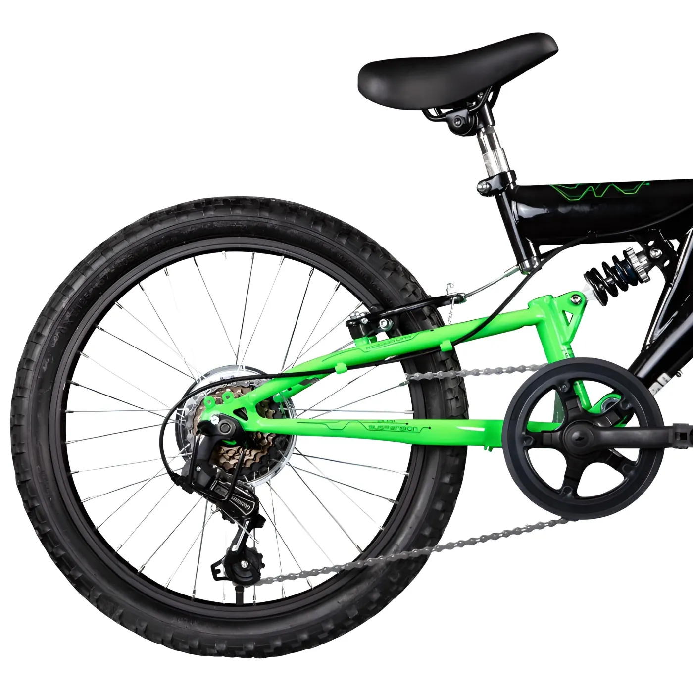 Galano FS180 to prawdziwy rower górski z pełnym zawieszeniem dla najmłodszych rowerzystów. Dzięki 20-calowym kołom i wysokości ramy 31 cm jest odpowiedni dla dzieci w wieku około 6 lat lub o wzroście 120–135 cm.