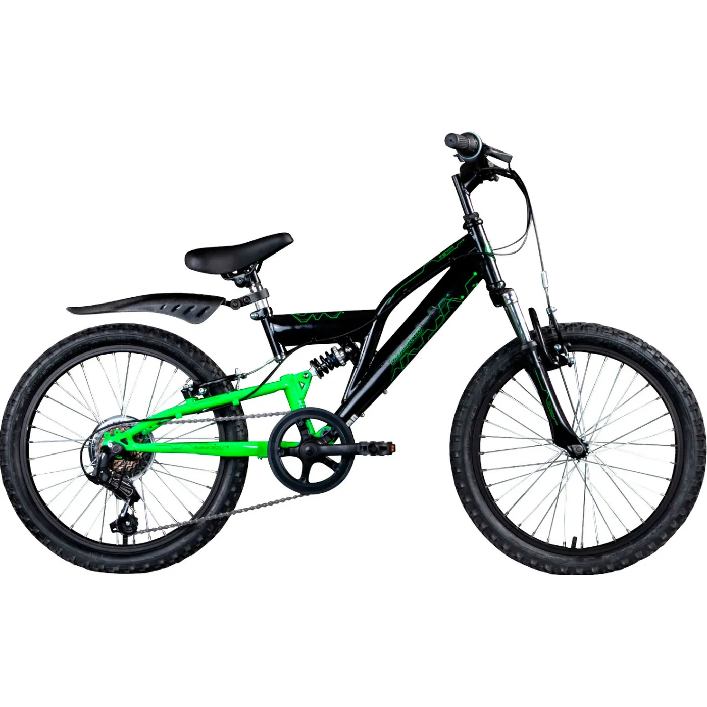 Galano FS180 to prawdziwy rower górski z pełnym zawieszeniem dla młodych rowerzystów! Dzięki 20-calowym kółkom i wysokości ramy 31 cm jest odpowiedni dla dzieci w wieku około 5 lat lub o wzroście 120–135 cm.
