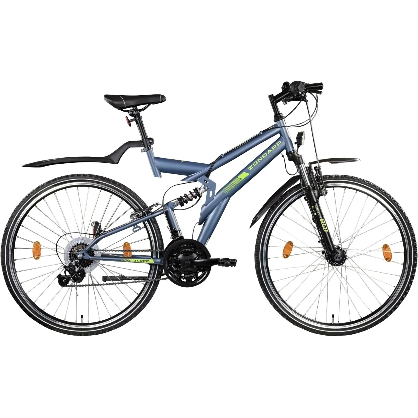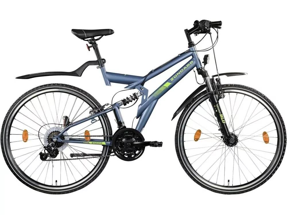 Dzięki Zündapp Blue 3.0 możesz zdobyć pierwsze doświadczenia z rowerem górskim z pełnym zawieszeniem. MTB to wszechstronny rower, który świetnie sprawdza się zarówno na wycieczkach, jak i w życiu codziennym.