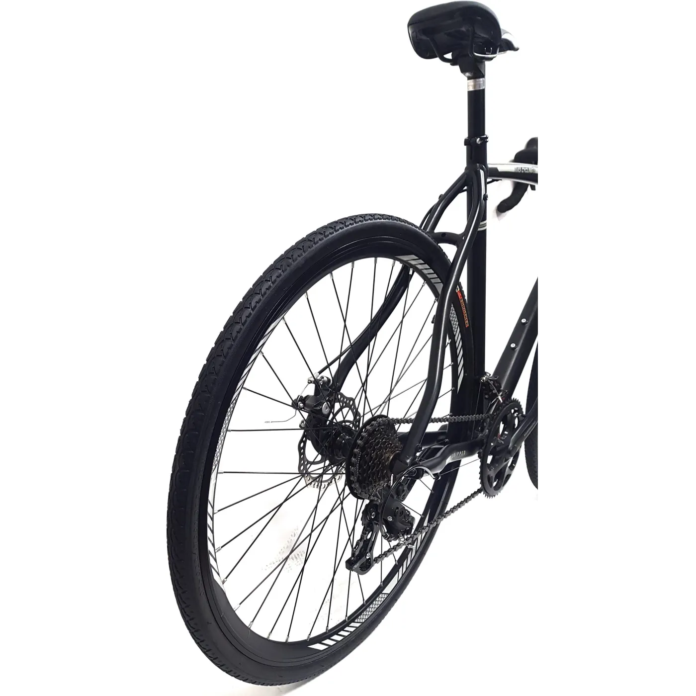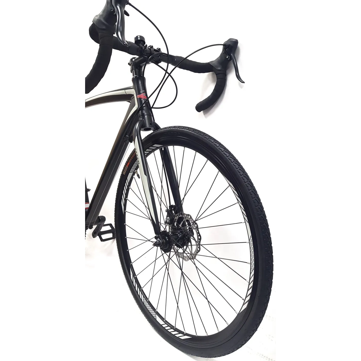 Rower szutrowy 28 cali sprawia, że z łatwością pokonasz wyznaczoną trasę. Szersze, lekko bieżnikowane opony zapewniają niezbędną przyczepność na sypkiej nawierzchni, pedały platformowe oferują komfort podczas szybkiej jazdy, a mechaniczne hamulce tarczowe zapewniające odpowiednio większą siłę hamowania w terenie.