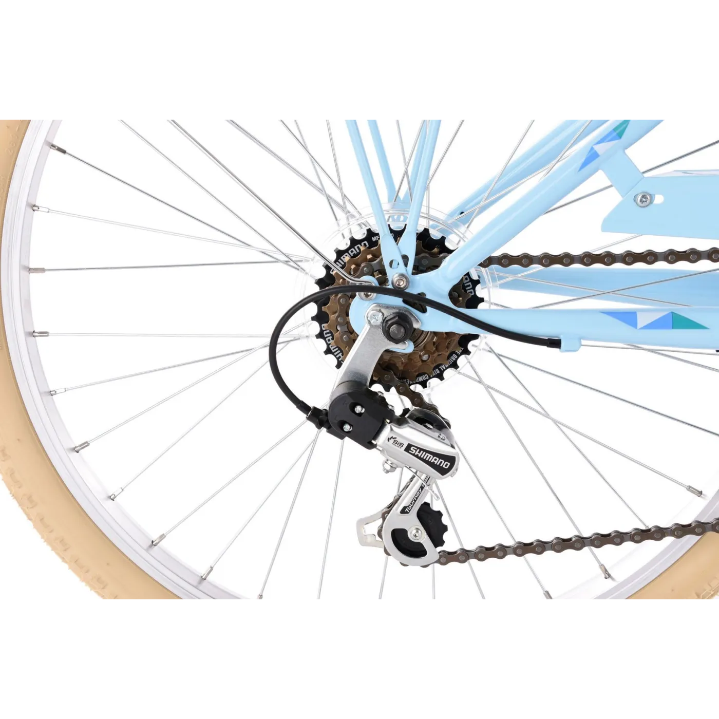 Rower dziecięcy jest również wyposażony w 6-biegową przerzutkę. Dzięki temu Twoje dziecko może przyzwyczaić się do większych rowerów młodzieżowych za pomocą łatwej w użyciu manetki obrotowej MRX. Dodatkowo, hamulce v-brake zamontowane z przodu i z tyły oferują bezpieczne hamowanie.