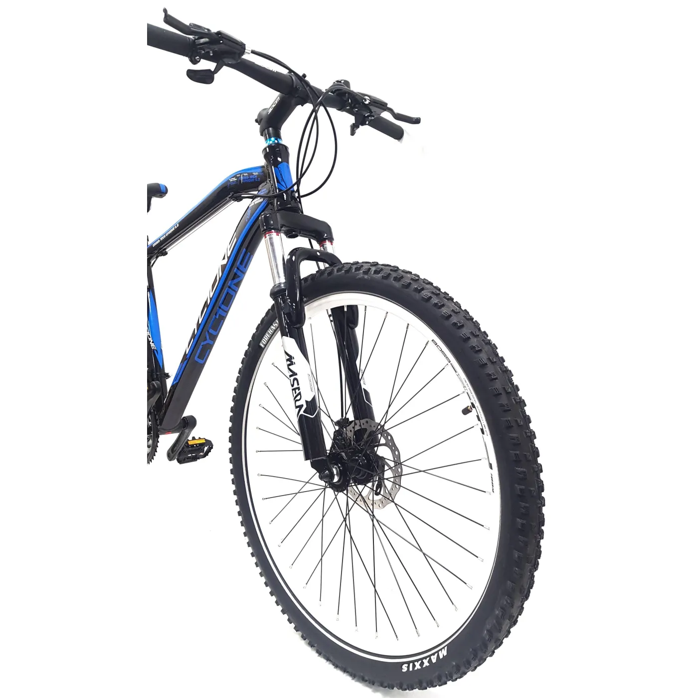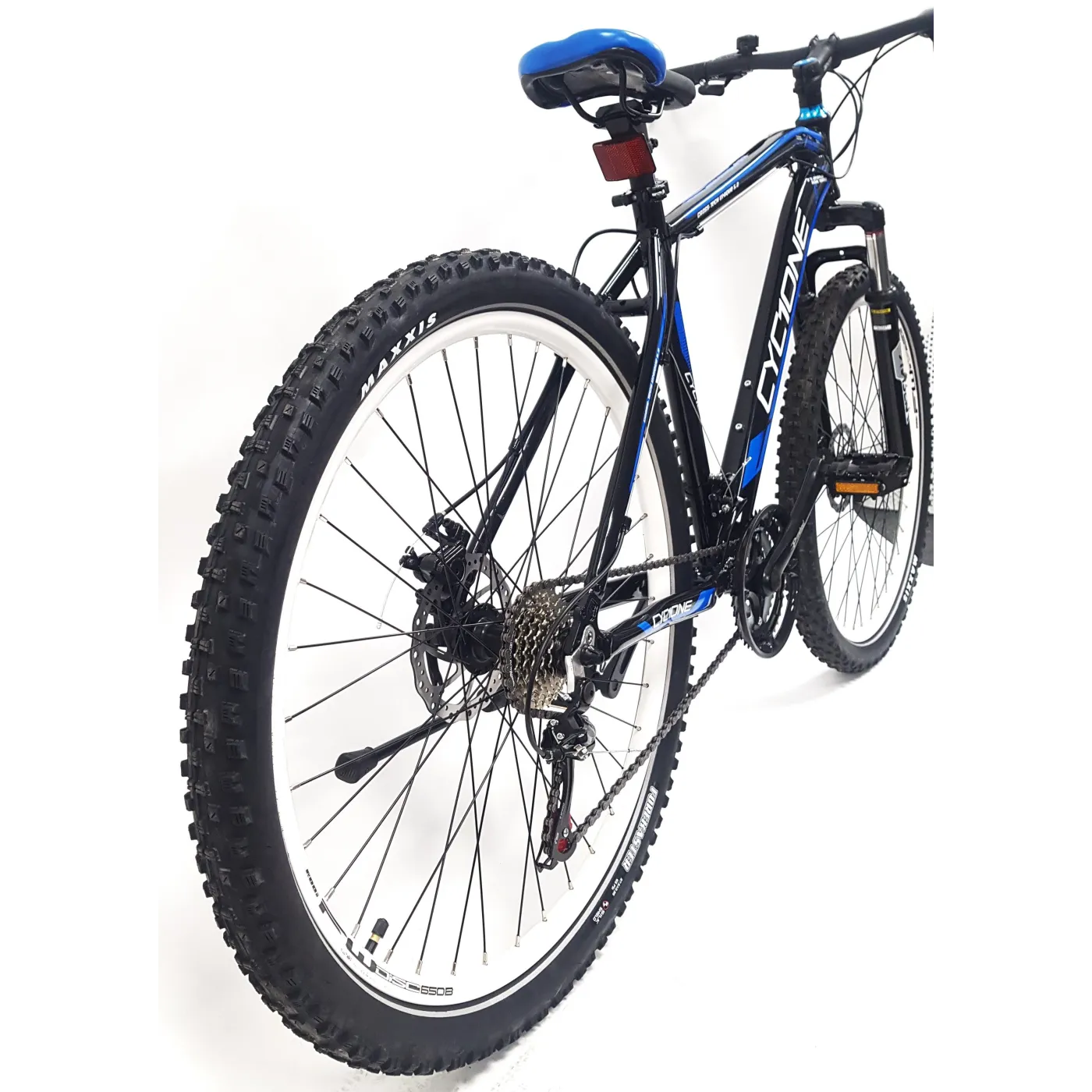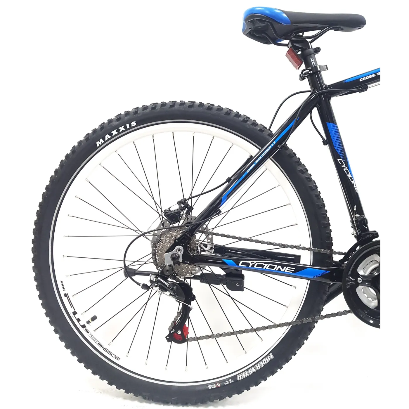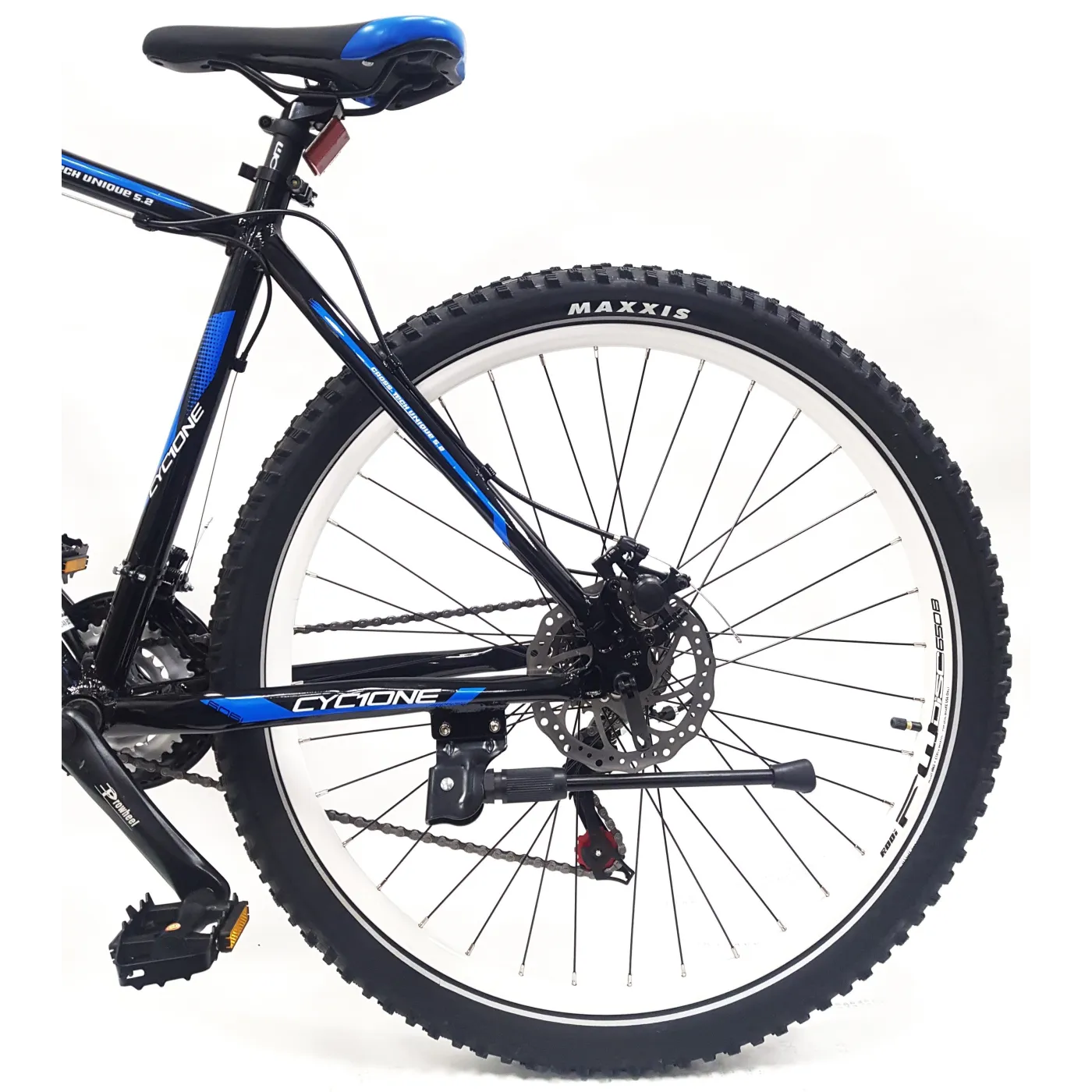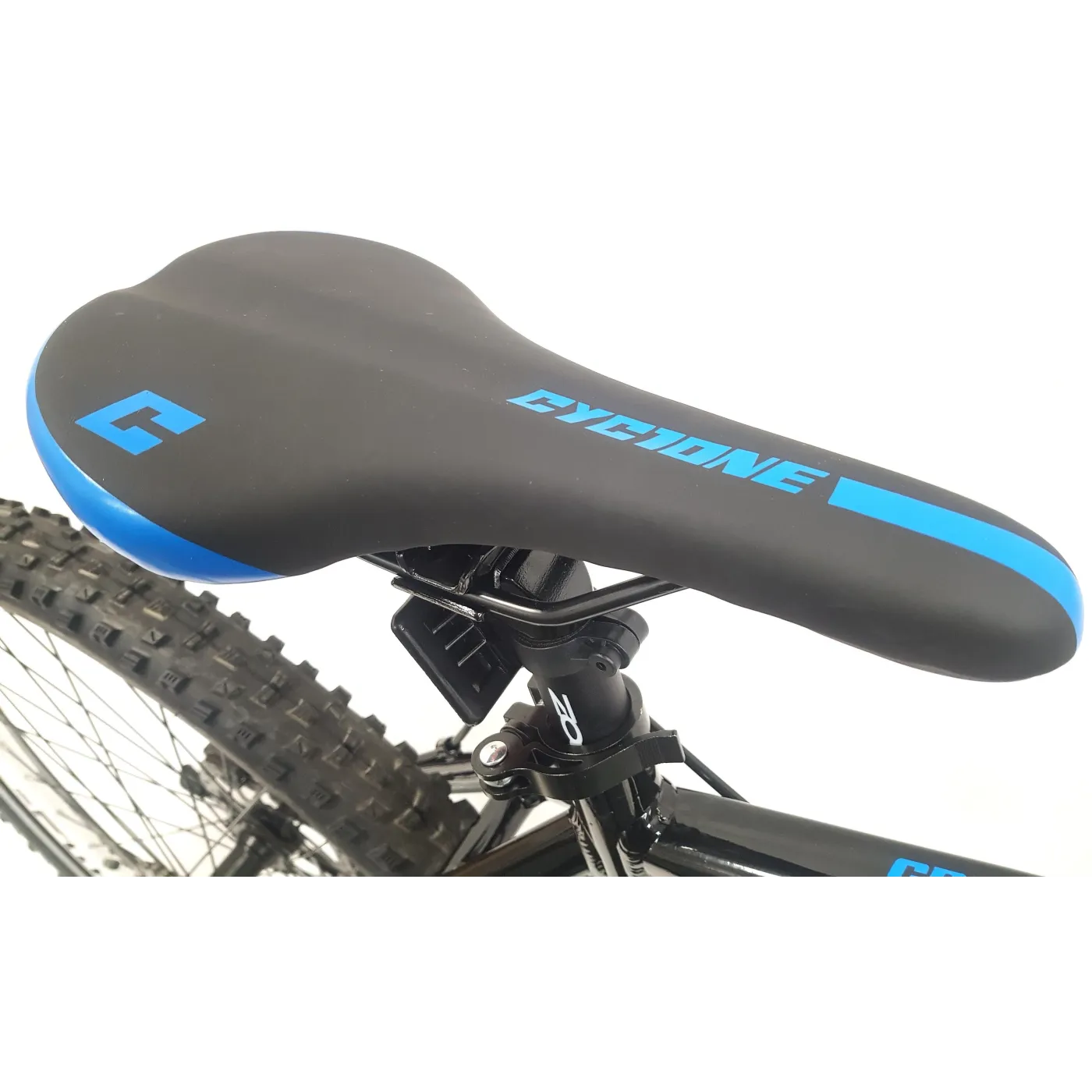Dobrze przemyślany: 27,5" hardtail MTB Cross-Tech Unique 5.2 od CYC1ONE. Rower jest całości w kolorze czarnym - odświeżony niebiesko-białymi detalami, które przyciągają uwagę.