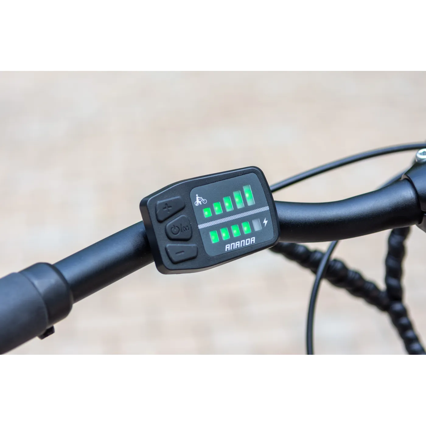- Jednostka sterująca: LED ANANDA - umożliwia bieżący odczyt najważniejszych parametrów jazdy (poziom naładowania baterii, wybrany tryb wspomagania)