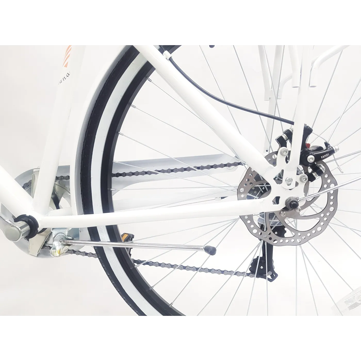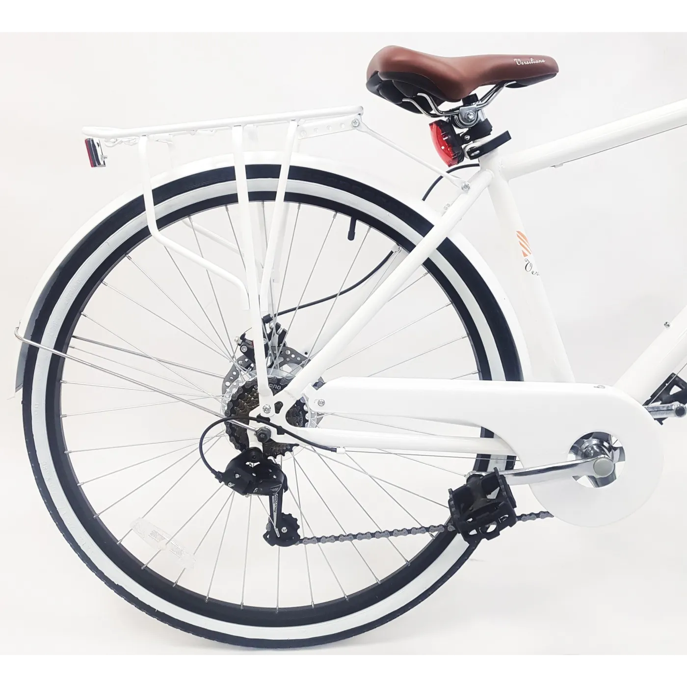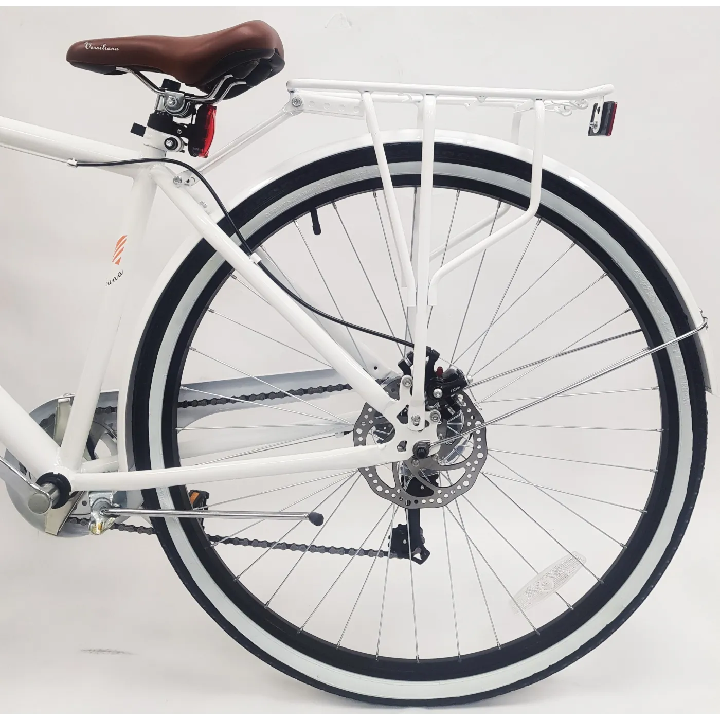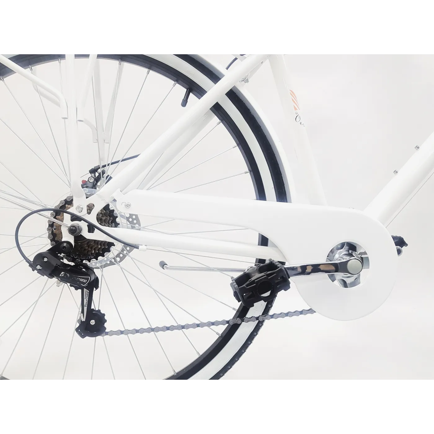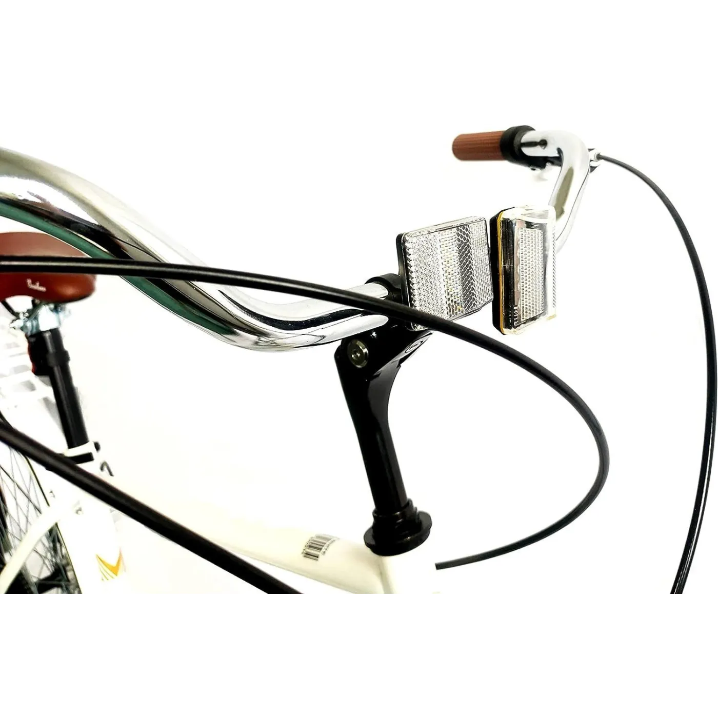 ✔️ Duże opony 28" x 1,50" zapewniają komfortową jazdę, a dodatkowe elementy jak błotniki, osłona łańcucha, bagażnik, oświetlenie, dzwonek, stopka i odblaski sprawiają, że Versiliana City Bike jest kompletnie wyposażony i gotowy do użytku.