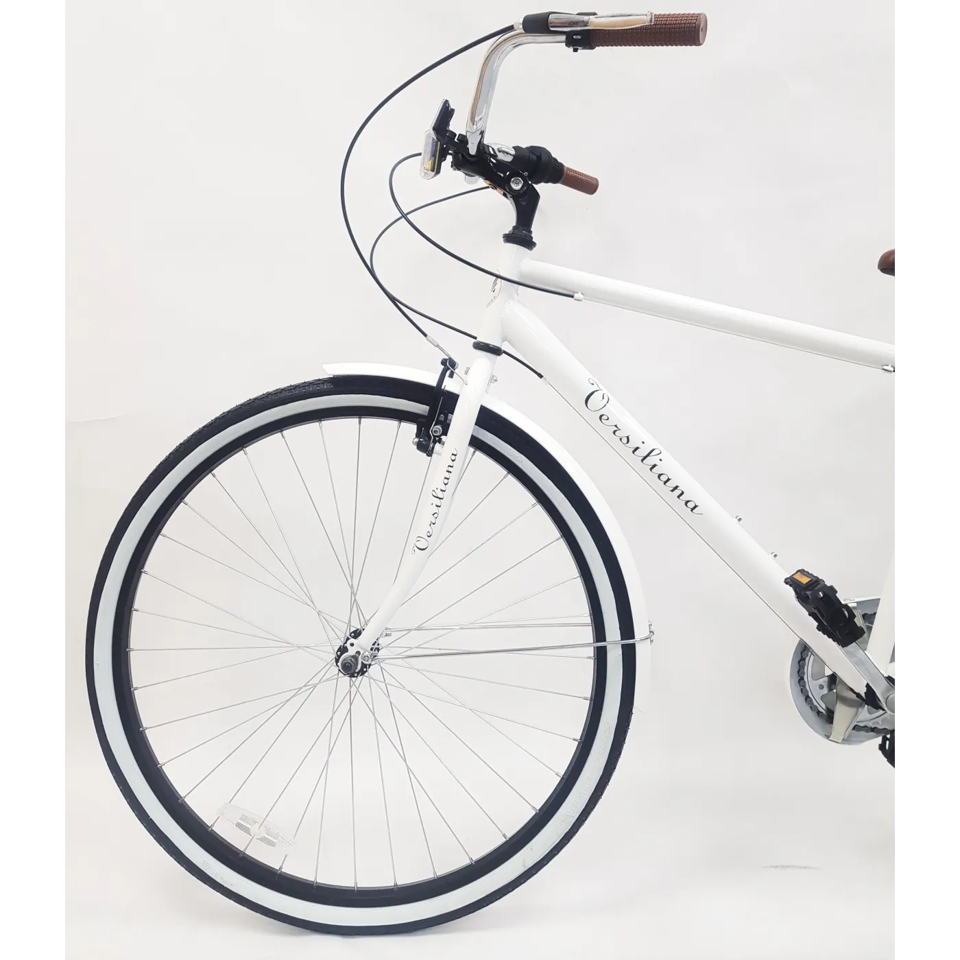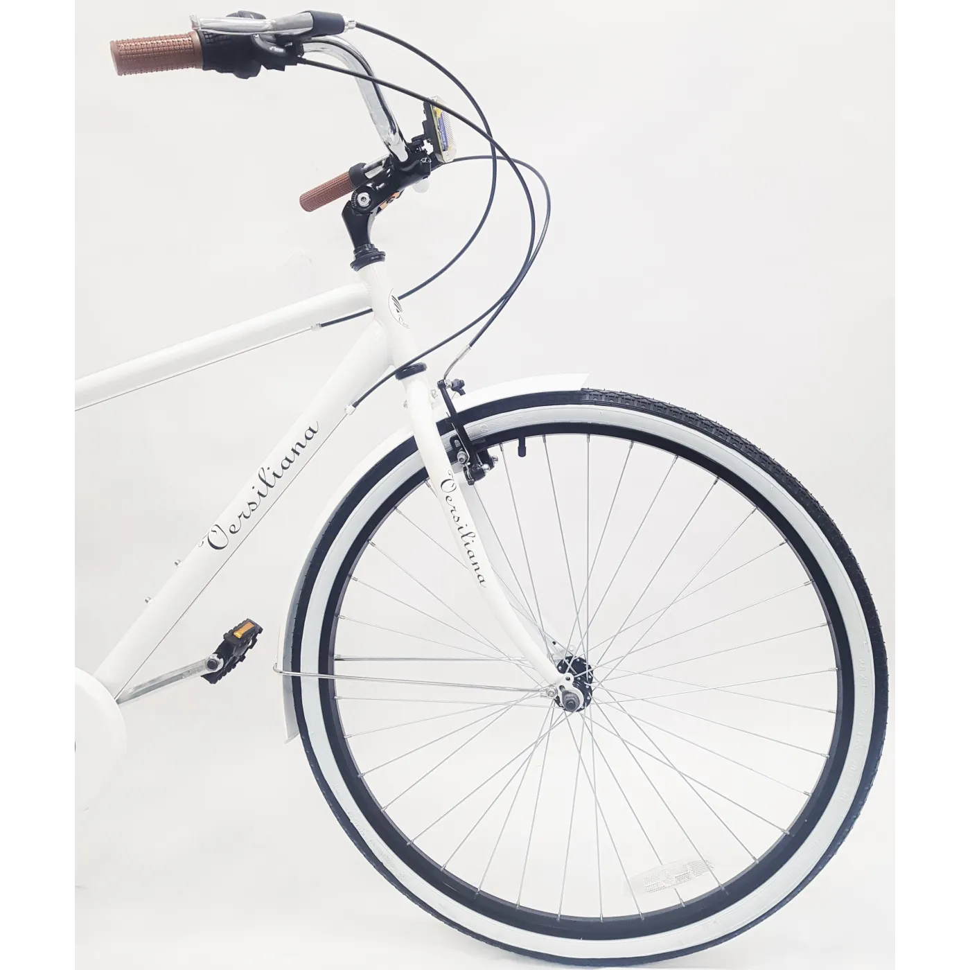 👌 Estetyczny biały kolor z brązowymi akcentami nadaje mu eleganckiego i nowoczesnego wyglądu, który na pewno przyciągnie uwagę na ulicy. Versiliana City Bike to doskonały wybór dla mężczyzn, którzy cenią sobie styl, wygodę i jakość podczas jazdy miejskim.