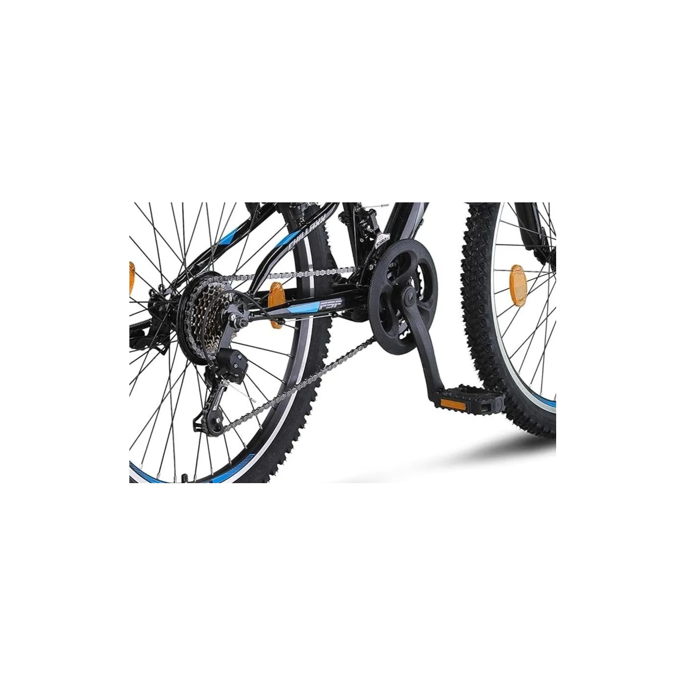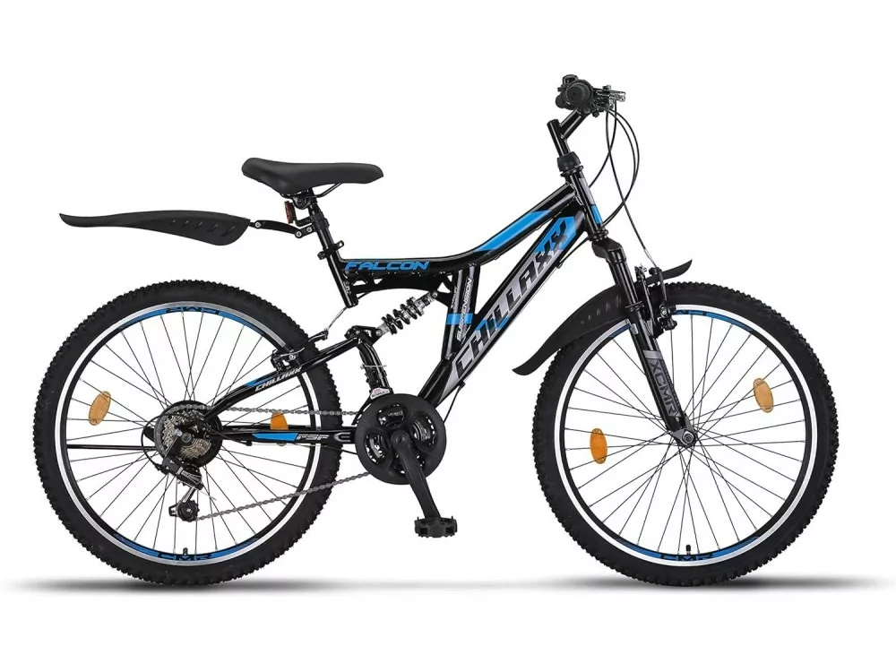 ✔️ Opony 24" x 1,75" zapewniają dobrą przyczepność do podłoża, a czarny design z niebiesko-szarymi akcentami nadaje rowerowi stylowy i młodzieżowy wygląd. Błotniki, dzwonek, stopka oraz odblaski to dodatkowe elementy, które sprawiają, że Chillaxx Falcon jest kompletny i gotowy do użytku od razu po wyjęciu z opakowania.