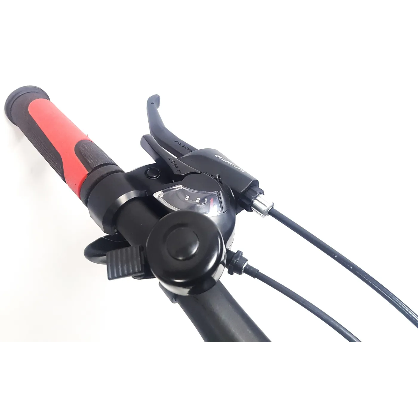 👌 Hamulce tarczowe mechaniczne z przodu i z tyłu gwarantują skuteczne zatrzymywanie się, niezależnie od warunków atmosferycznych. 21-biegowa przerzutka Shimano umożliwia płynne zmiany przełożeń, co jest niezbędne podczas pokonywania różnorodnych tras górskich.