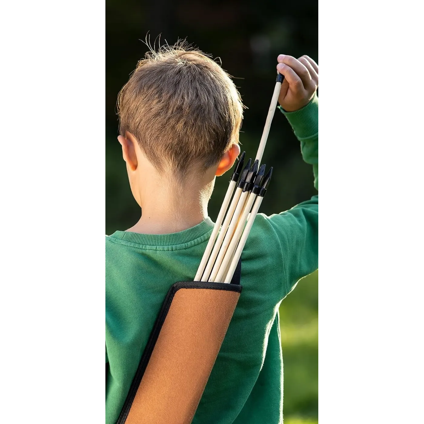 W zestawie znajdują się trwałe bambusowe strzały z elastycznymi, gumowymi końcówkami, co zapewnia bezpieczną zabawę i naukę dla młodych poszukiwaczy przygód. Dodatkowo regulowany pasek pozwala dostosować łuk do każdego wzrostu, co sprawia że jest odpowiedni dla dzieci w różnym wieku.