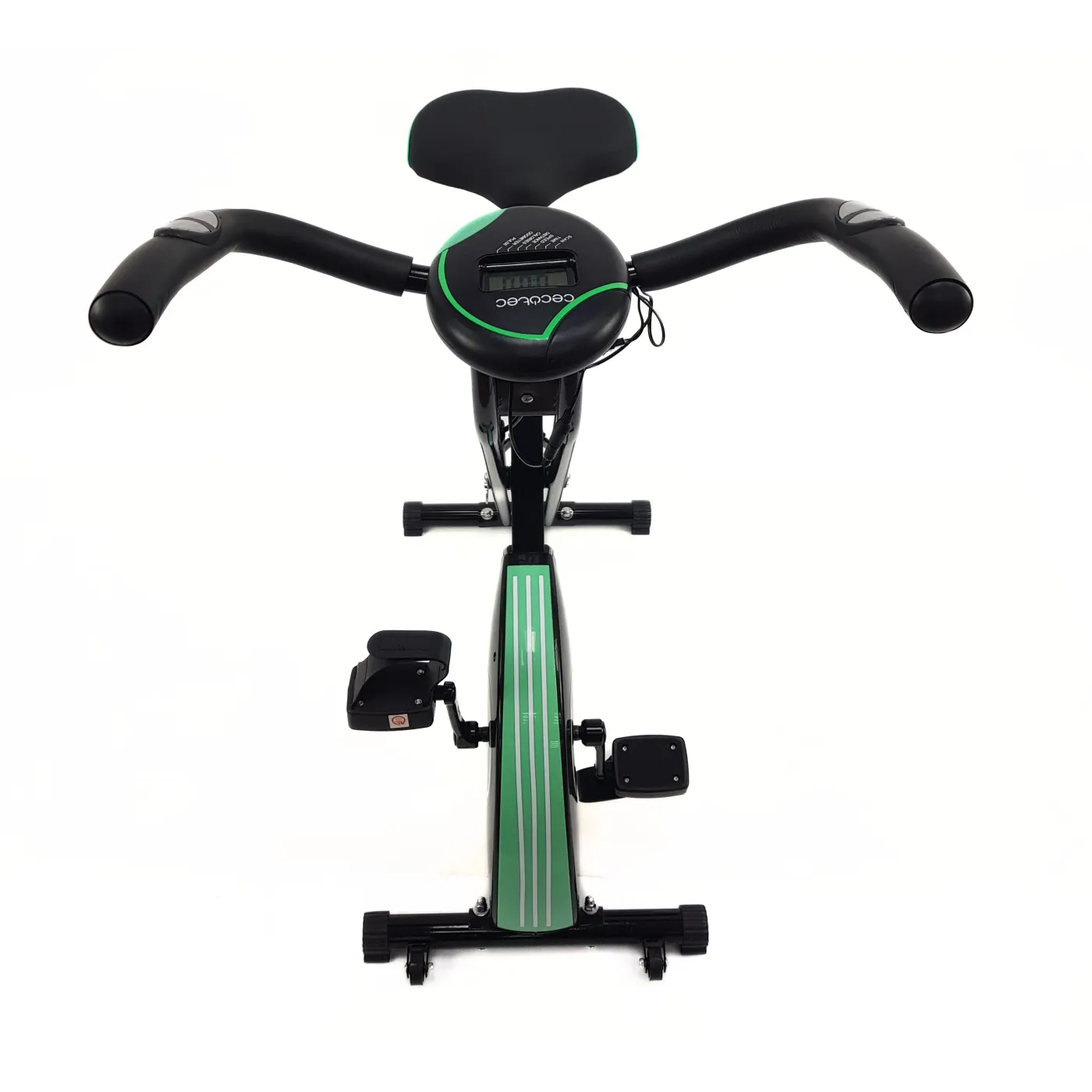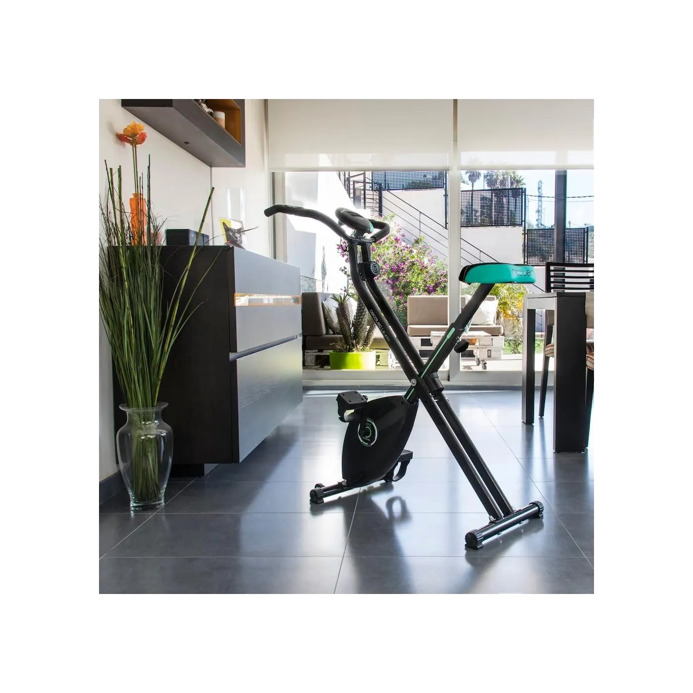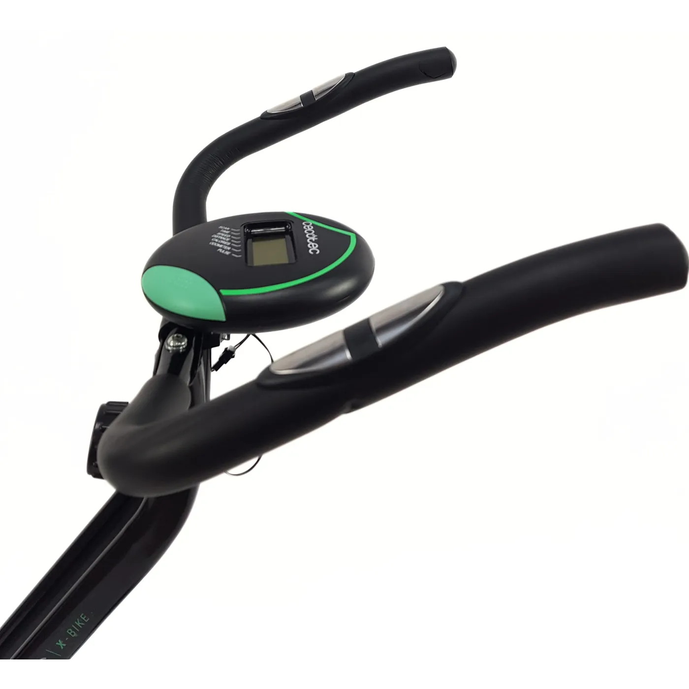 Cecotec X-Bike to idealne urządzenie do aktywnego treningu w domowym zaciszu. Składany model z obsługą magnetyczną zapewnia wygodną i efektywną jazdę bez zbędnego hałasu, dzięki systemowi Silence Fit. Monitor tętna pozwala na kontrolowanie pulsu podczas treningu, a ekran LCD wyświetla wszystkie niezbędne informacje, takie jak czas, prędkość, spalone kalorie, odległość i tętno.